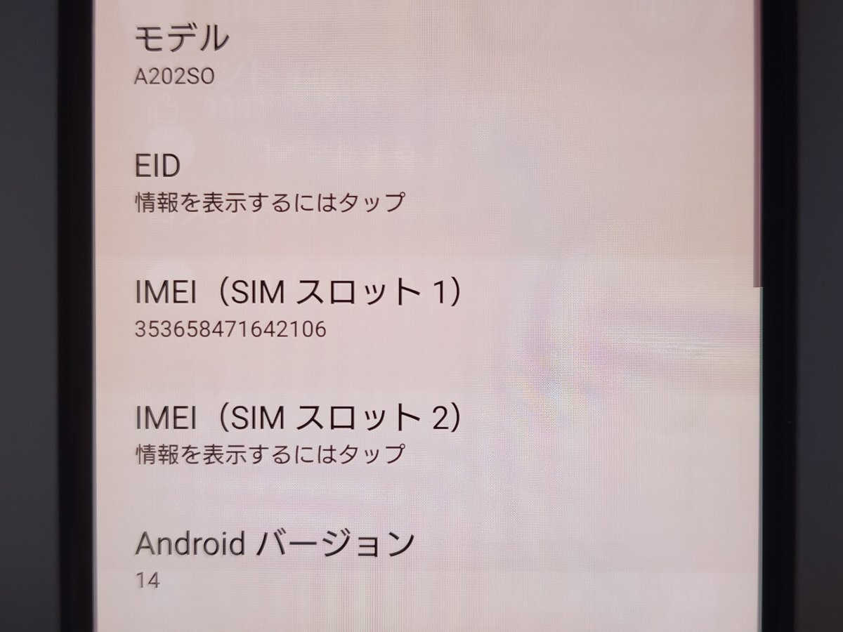 【外装状態】: C 画面には傷が少しあります。側面は全体にカバー痕や擦り傷がついています。背面は全体にカバー痕がついています。機能面は、画面にピンク色の濃い焼けがあります。