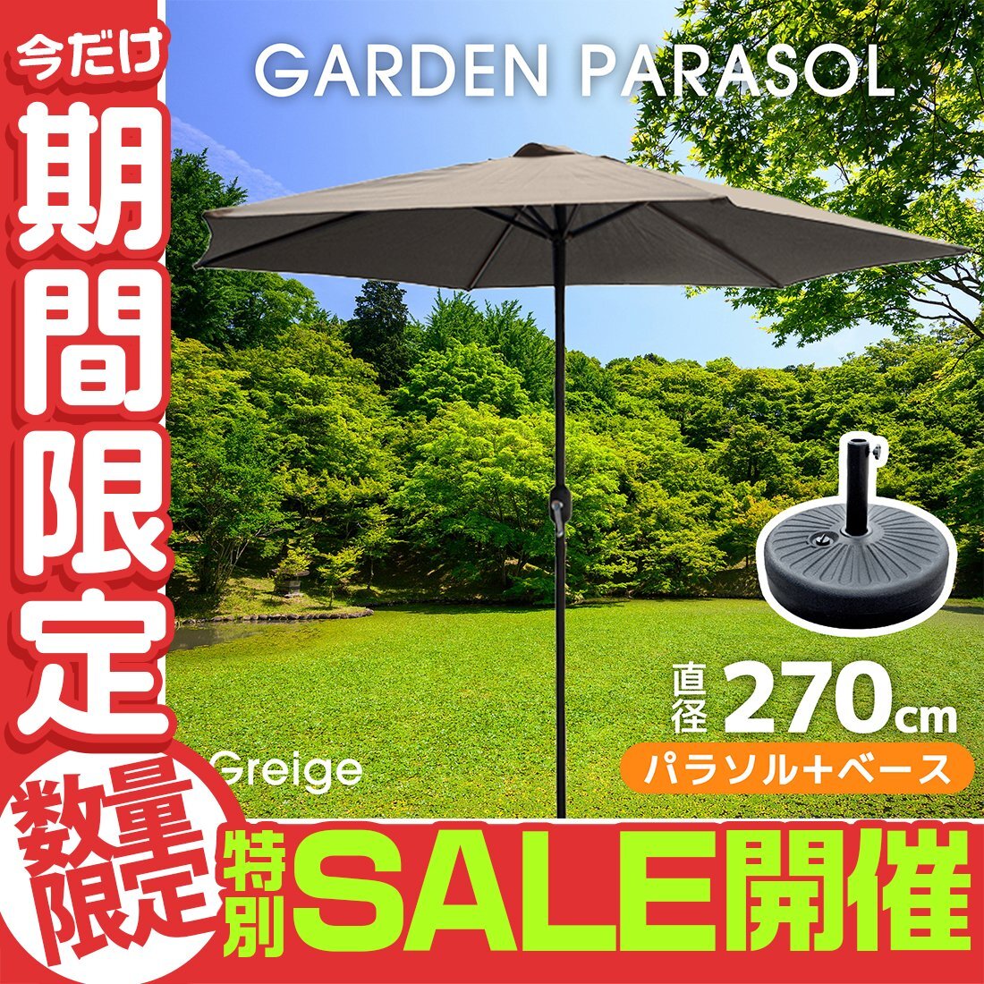 日差しから守るガーデンパラソルです。 バーベキューにピクニックにビアガーデンと晴れた日には欠かせないアイテム! ハンドル式で開閉が簡単! ハンドルをくるくる回るだけなので、女性でも簡単に傘を開くことができます。 パラソルの支柱は2つに分かれるので、持ち運びもラクラク! 水や汚れに強い撥水加工! 雨に濡れても水を弾くので、雨漏れする心配はありません!お手入れもサッと拭くだけで簡単! ※完全防水ではありません。 中に水を入れて使用するパラソルベーススタンド。 ガーデンやベランダでのパラソルの使用でオススメ! 使用後は中の水を抜けば軽くなるので持ち運びにも便利です。 本体は取っ手付きなので持ち運びがラクラク! ポール受けキャップは本体に収納できます。 パラソルスタンド以外にも、のぼり等のスタンドに最適! 【商品仕様】 カラー:グレージュ オープン時サイズ(約):幅2700×奥行2700×高さ2370mm 支柱径(約)直径40mm 重量(約):4.5kg 材質:ポリエステル、アルミ ●ベース(土台) サイズ(約):幅500×奥行500×高さ300cm 重量(約):2.1kg 水を入れた時の重量(約):21.5kg 対応パラソル(約):直径40mm、49mm対応 カラー:ブラック 材質:ポリエチレン他 【注意事項】 ・お客様による組み立て商品です。 ・強風時は破損、転倒などの危険がありますので、ご使用はおやめください。 ・傘生地には撥水加工をしておりますが、完全防水ではありません。 ・同梱されている説明書に一部誤りがございます。パラソル固定用のネジが2個と記載されていますが1個の誤りです。予めご了承ください。 |