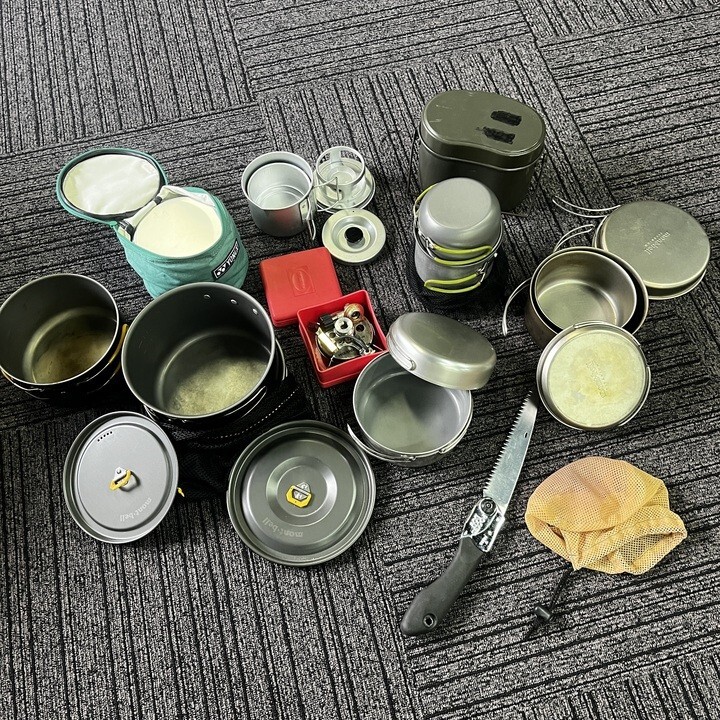 【キャンプ用品 おまとめ】1円~◆モンベル ユニフレーム 等 キャンプ アウトドア クッカー 鍋 シングルバーナー 防災 登山 mc01080225