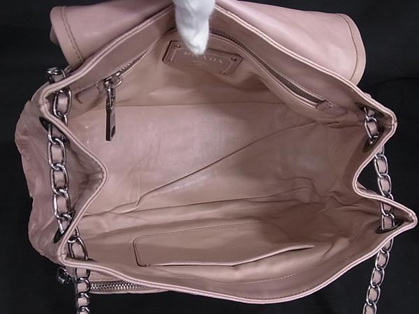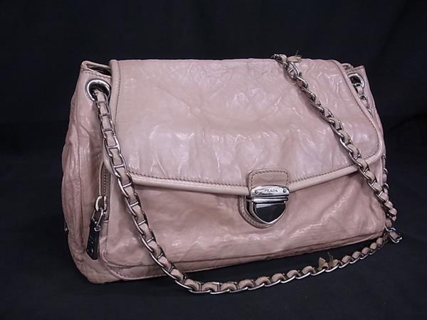1円 PRADA プラダ レザー チェーン トートバッグ ショルダーバッグ レディース ベージュ系 BP2439