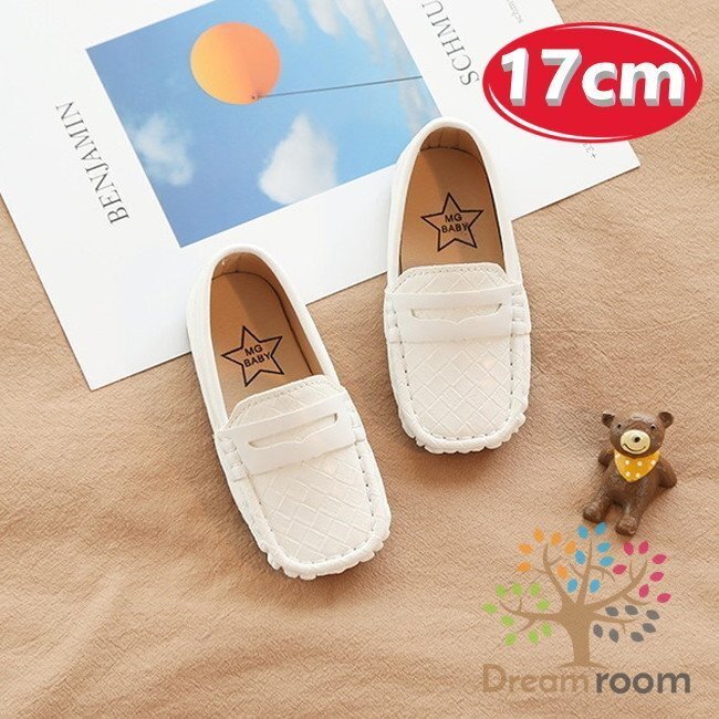 kids イントレチャート ローファー シューズ 【ホワイト 17cm】靴 フォーマル 編み込み 合皮 入学式 レザー