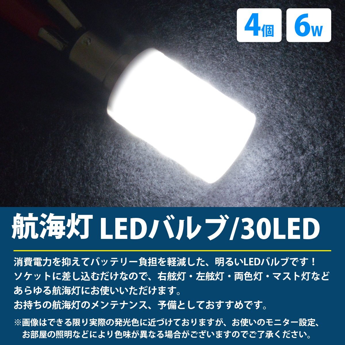 [4個set]BAY15D 6W 12v 24V 兼用 LED バルブ 段違い マリン用 船 ボート 船舶 ヨット 航海灯 6500K 白 ホワイト 防水 電球