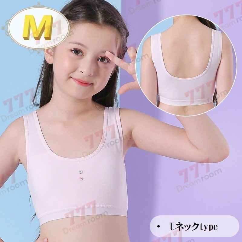 1スタ☆kids Uネック ハーフトップブラ 【M】ピンク スポーツブラ 子供 ファーストブラジャーインナー 下着 K-410-pk