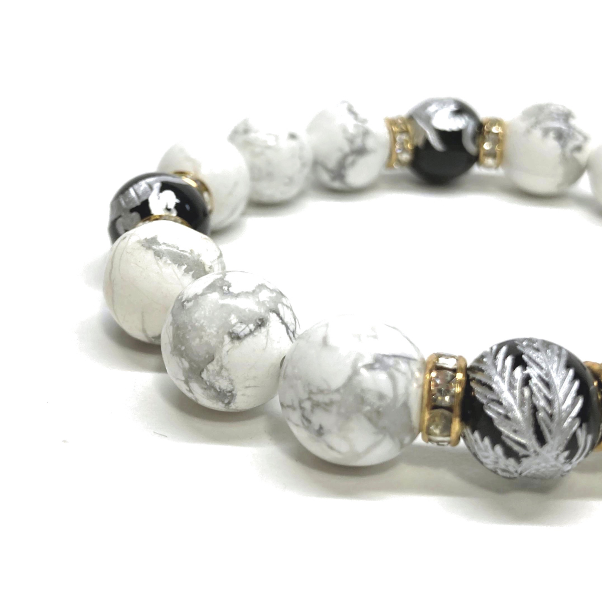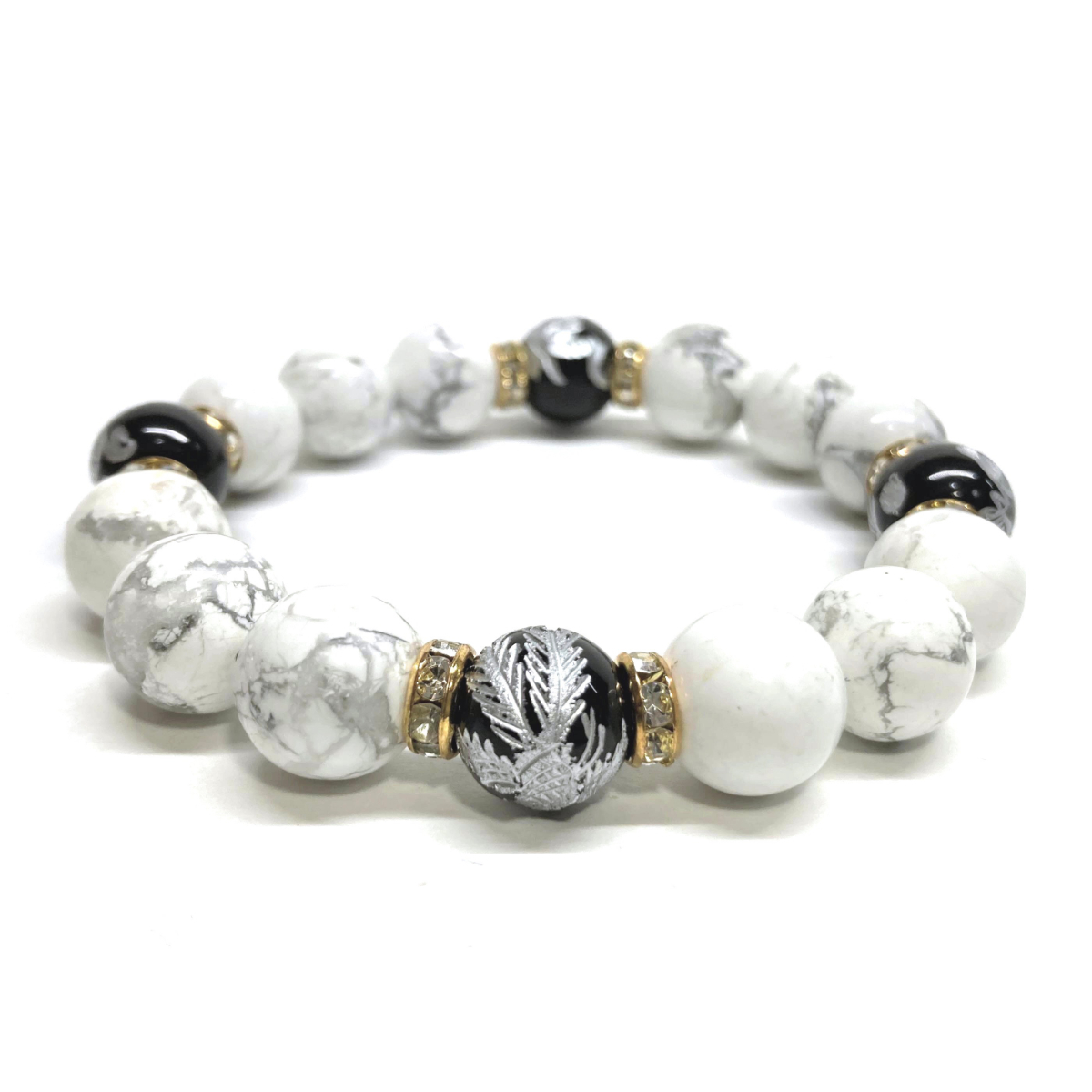 四神獣銀彫オニキス×ハウライト 12mm パワーストーン ブレスレット天然石 青龍 白虎 玄武 朱雀 運気上昇 開運 金運 お守り 四神相応 G