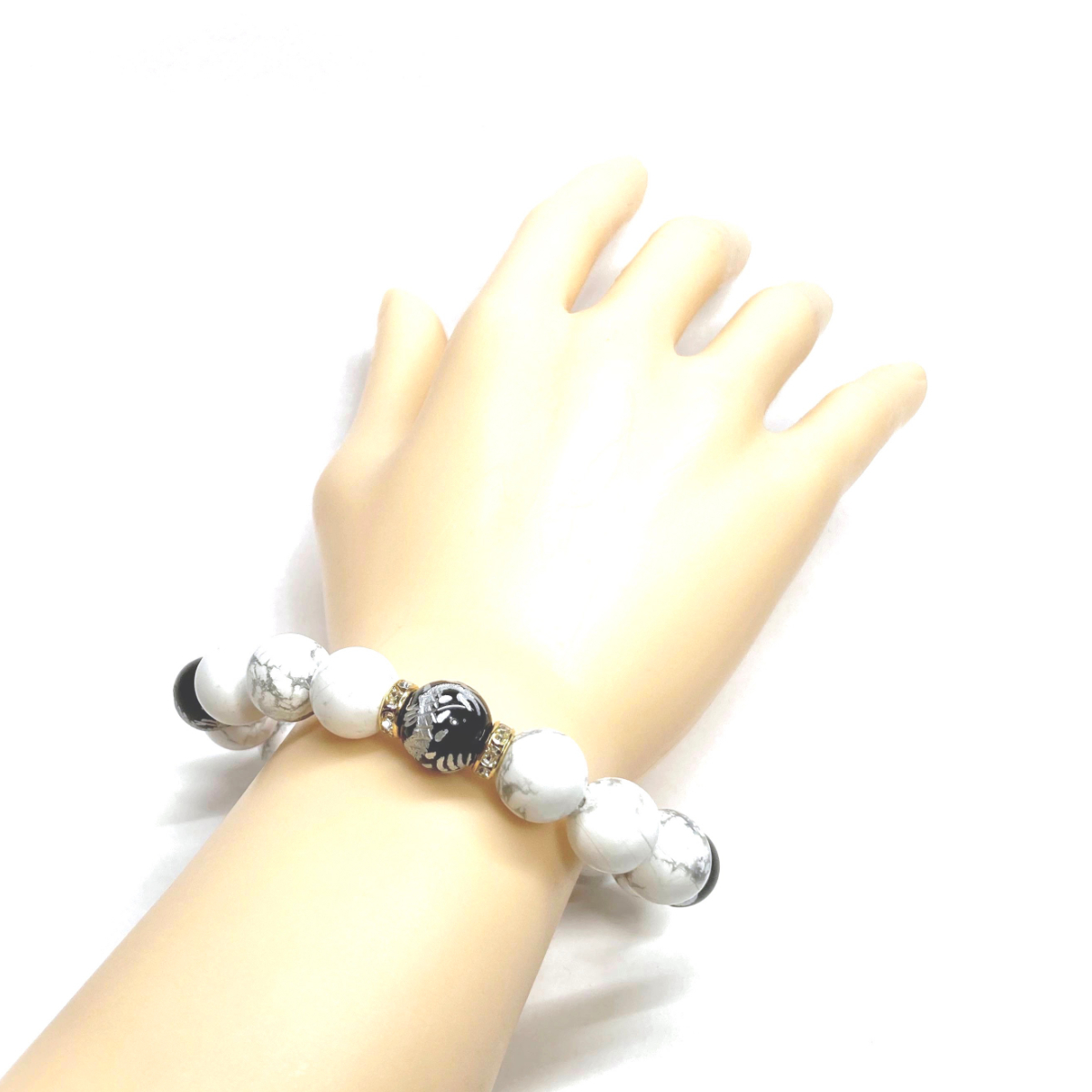 こちらは、四神獣銀彫オニキとハウライトを組み合わせたパワーストーンブレスレットです。四神獣は、中国の伝説で4つの方向(東西南北)を守護する神聖な神。四神獣、厄災から身を守り、多くの運気を呼び込むと言われております。石大きさは程よくインパクトのある12mm玉で内周 約17cmです。 数に限りがございますので気になる方はお早めにどうぞ。