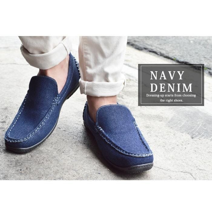 ドライビングシューズ 軽量 防滑 メンズ スリッポン デニム 車 運転 靴 ローファー カジュアル ステッチ【エコ配送】 bz1402
