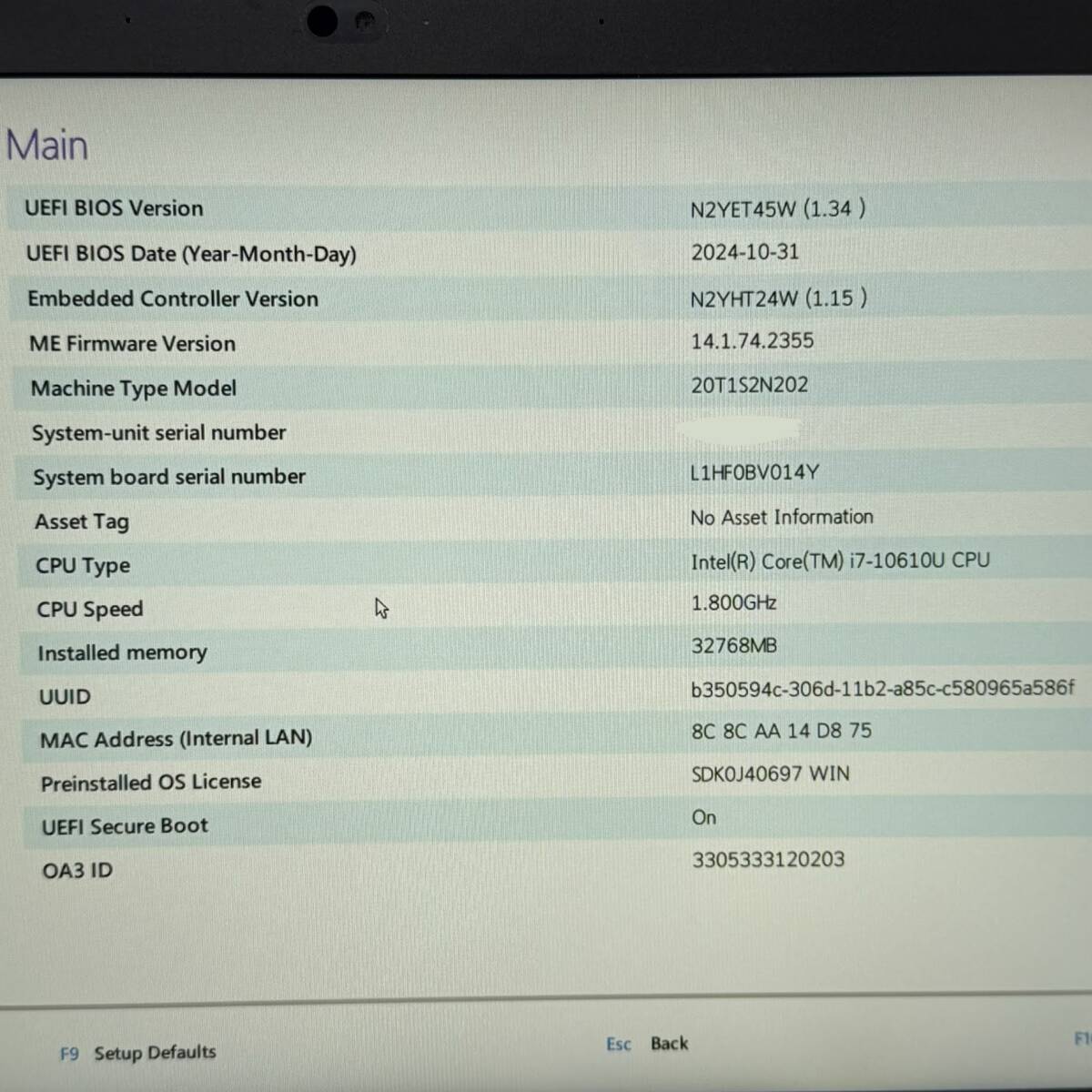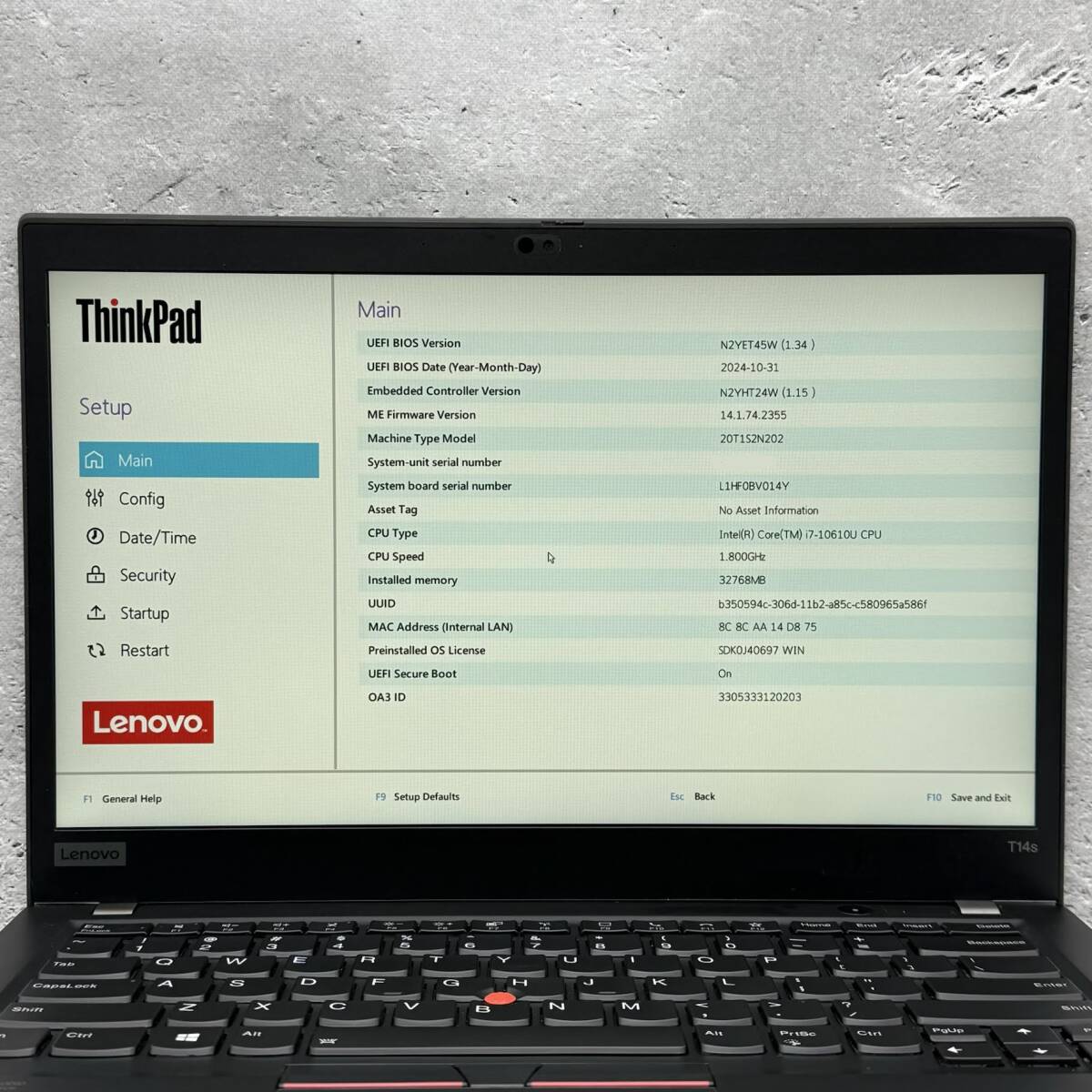 | Su-25876. LENOVO / ThinkPad T14s Gen1 / Core i7-10610U / 第10世代CPU / 32GBメモリ / HDD無し / 14インチ / 通電確認・ジャンク | |
