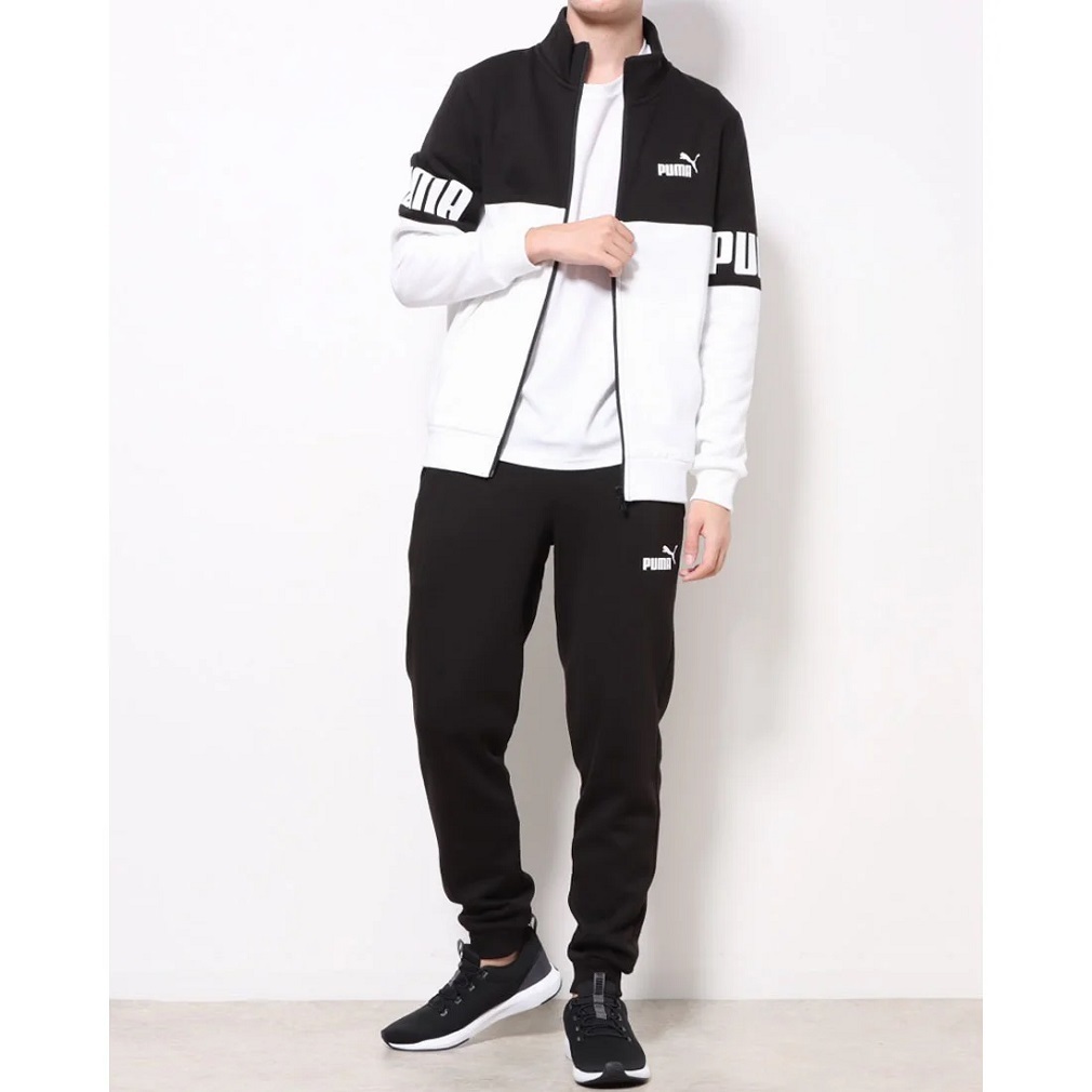 プーマ POWER カラーブロックスーツ XLサイズ ブラック/ホワイト 黒 白 スタンドカラージャケット&パンツ 裏起毛 スウェット 上下セット