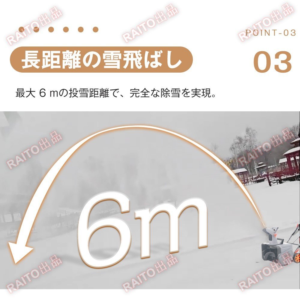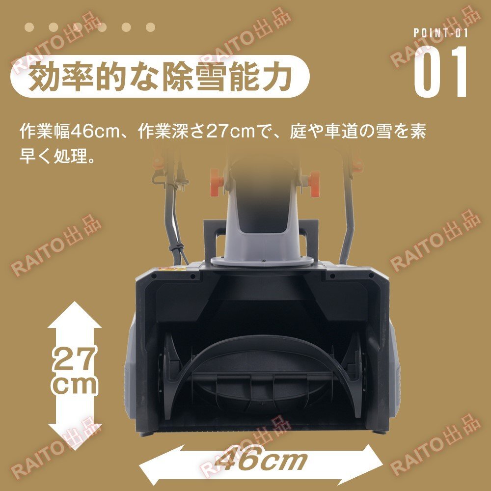 【効率的な除雪能力】作業幅46cm、作業深さ27cmで、庭や車道の雪を素早く処理。【長距離の雪飛ばし最大6mの投雪距離で、完全な除雪を実現。