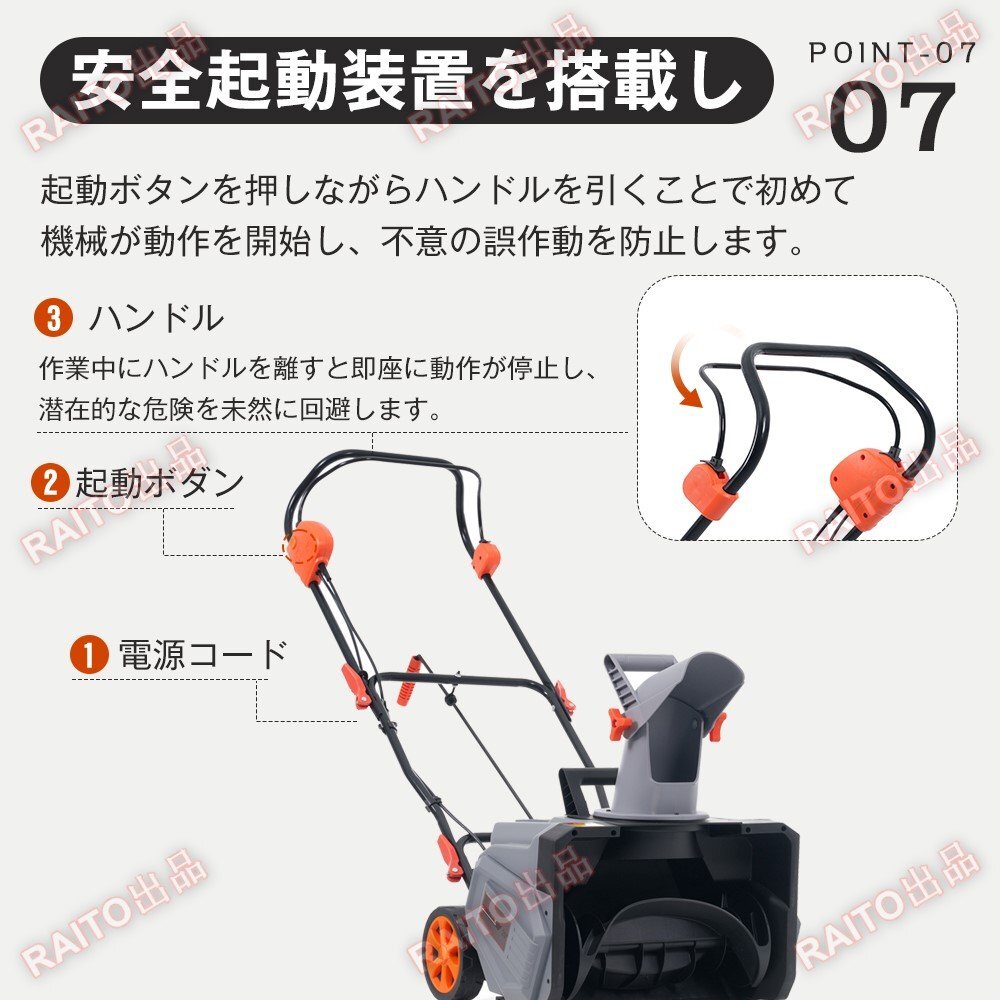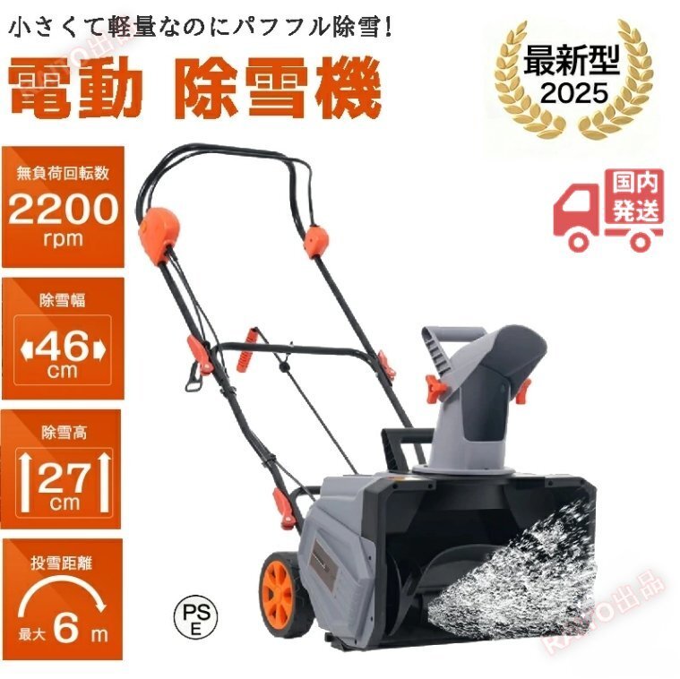 【翌日発送】除雪機 大型 手押し式 電動除雪機 180°回転可能 60°角度調整可能 除雪幅46cm 除雪深27cm 10M電源ケーブル 除雪器具 軽量
