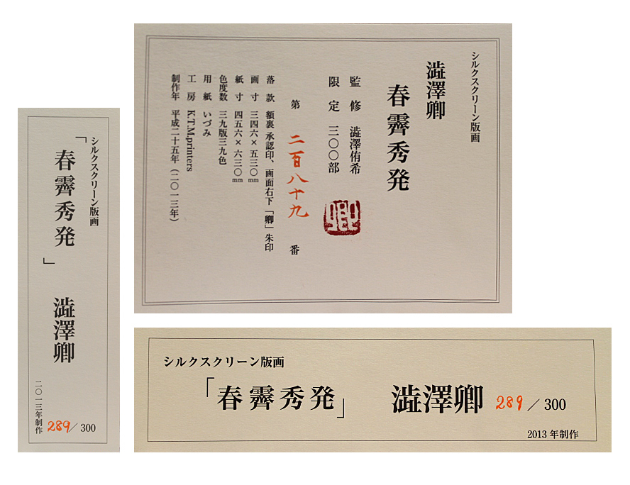 ■澁澤卿 【春霽秀発】 シルクスクリーン 印章有り エディション有り 奥付有り