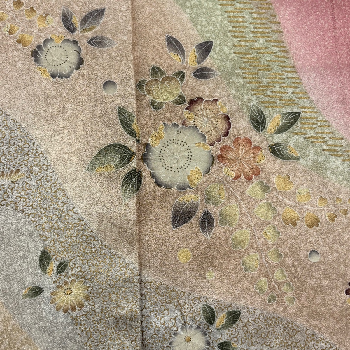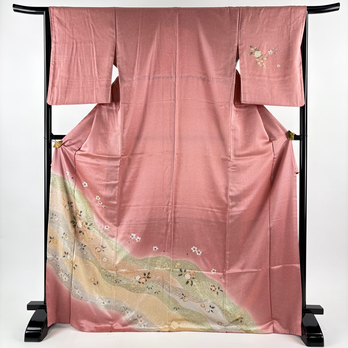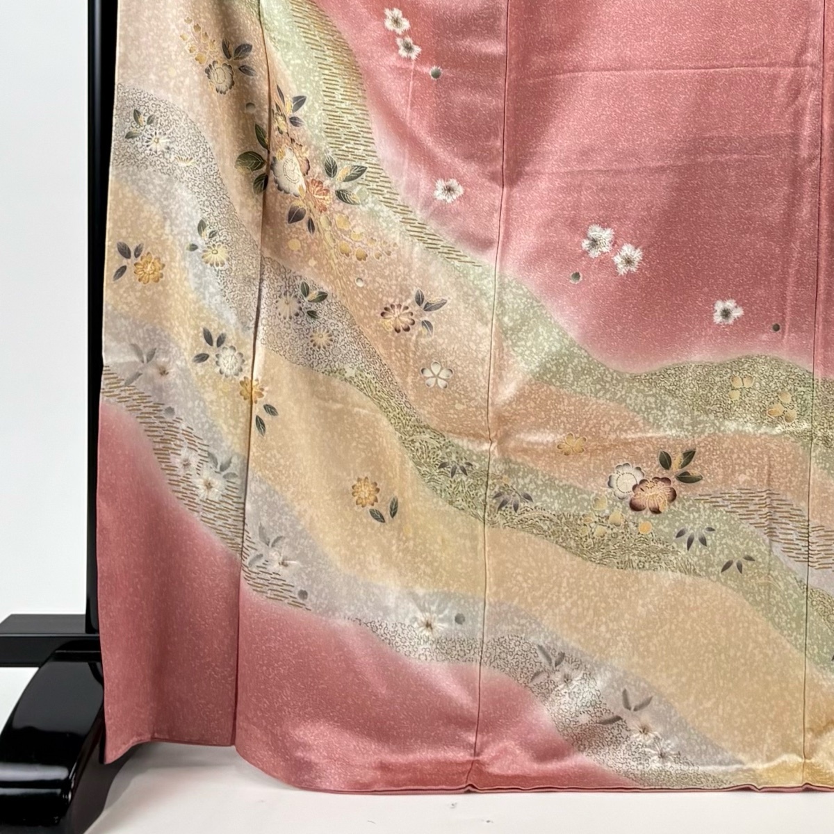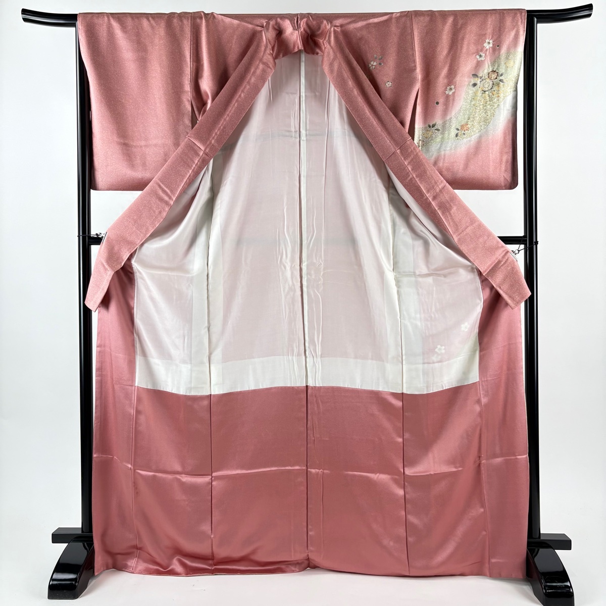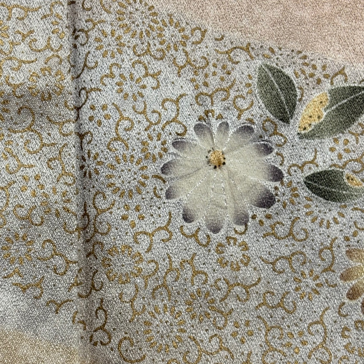 | 付下げ 秀品 草花 道長取り 金彩 染め分け ピンク 袷 身丈172 裄丈66 M 正絹 【中古】 |