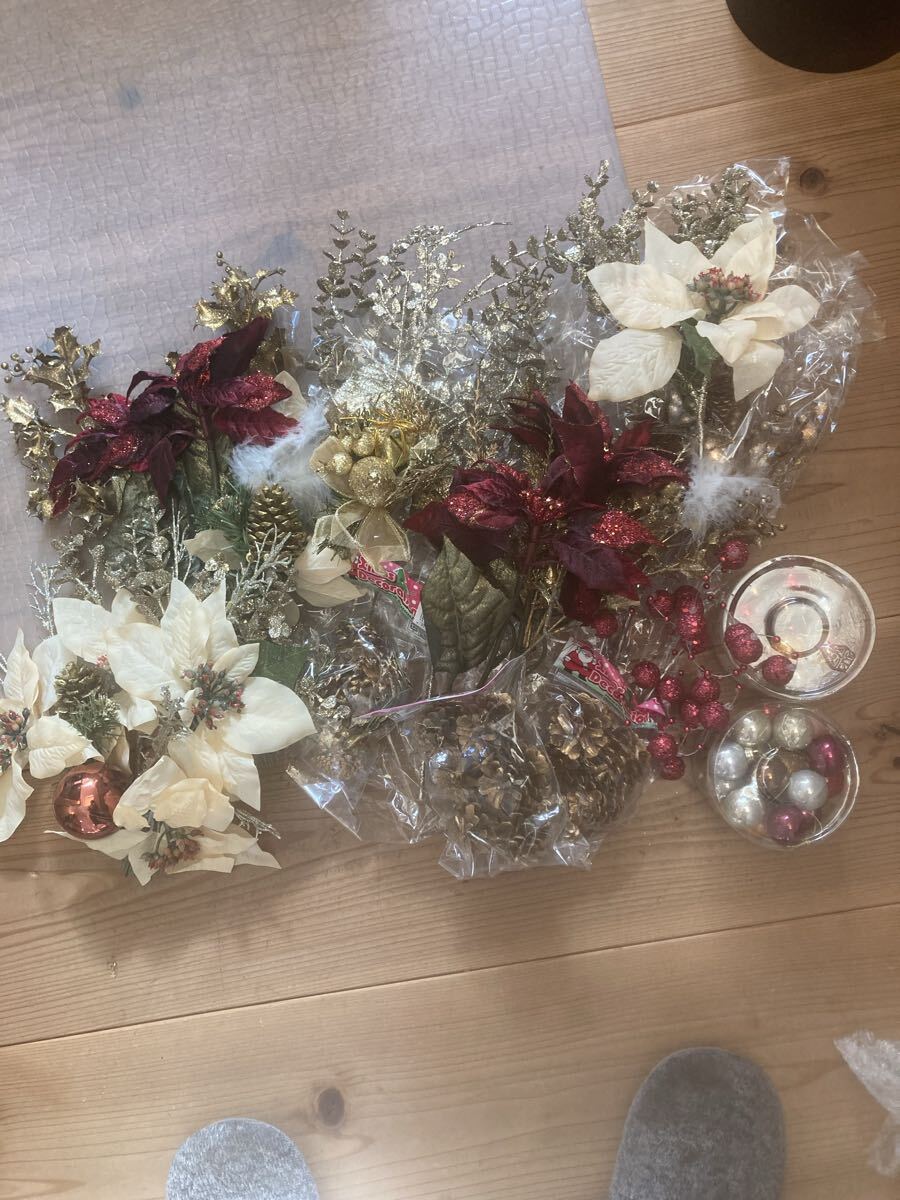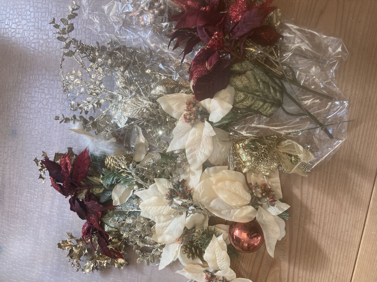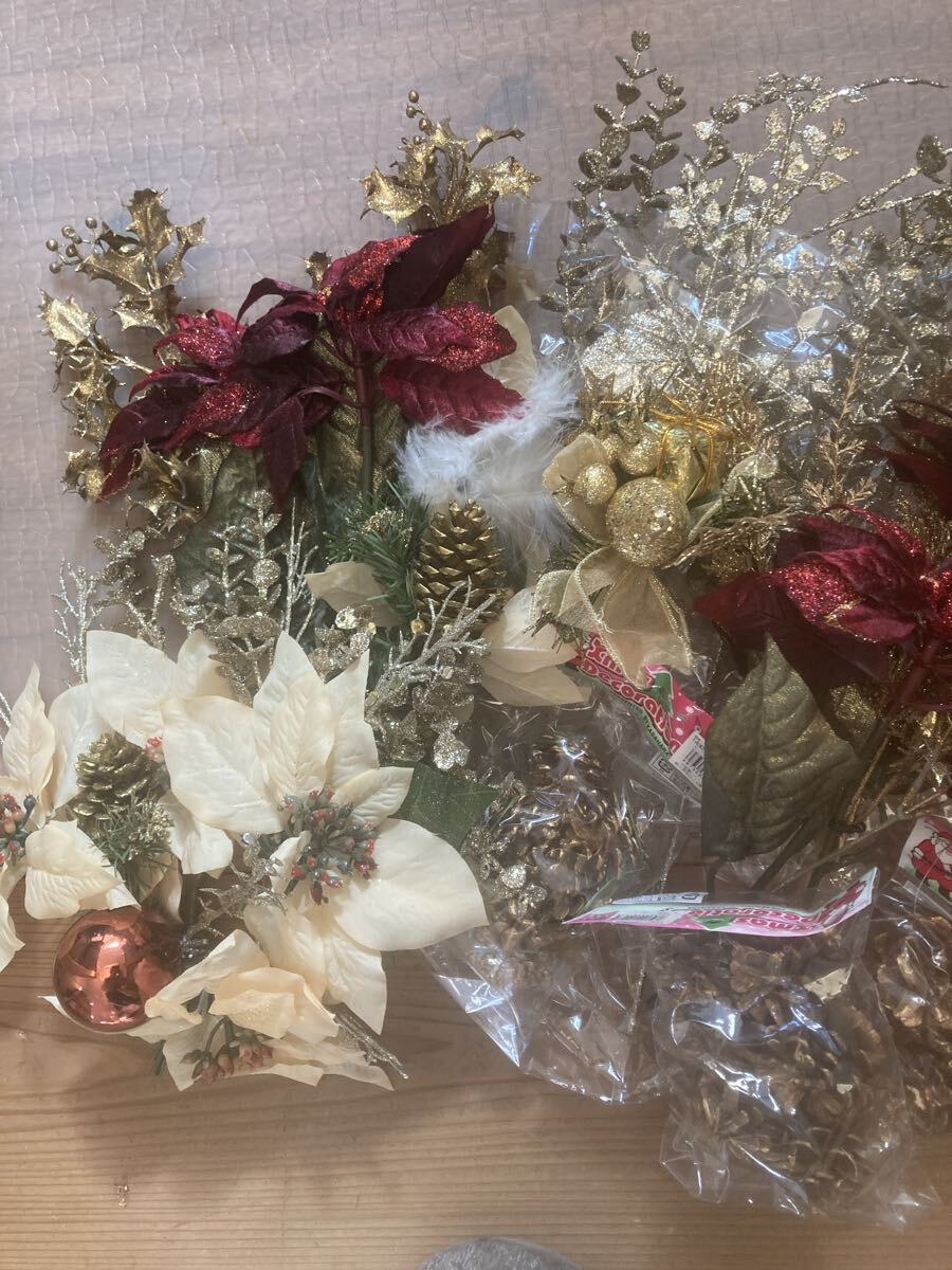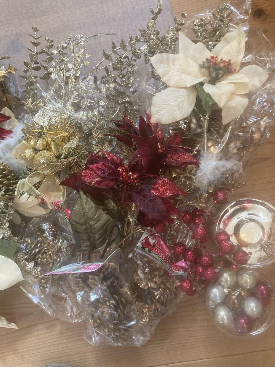 未開封のドングリや、リースの花を細工して作ったカサブランカなど色々を100サイズの箱に詰めて送付します。