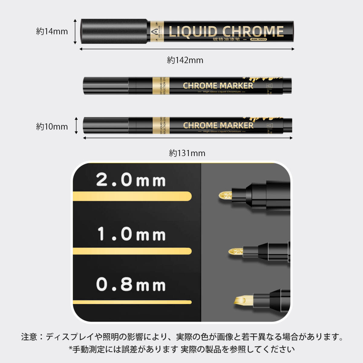 | この商品について | 【プロ仕様の画質を実現するミラーハイライト】:独自の液体クロムインクを採用。塗るだけでまるで本物の金属のような鏡面反射を実現。模型の細部やアクセサリーの装飾にもおすすめです。 【3種類のペン先で細部から広範囲まで対応】:丸型1.0mm・丸型2.0mm・刀型0.8mmの3本セット。細かい線描きから広い面の塗装まで、用途に合わせて自由自在に使い分けられます。 【高発色&速乾性。ムラなくスムーズに描ける】:インクの伸びがよく、一度塗るだけで美しい光沢を実現。乾燥も早く、作業中に手が触れてもヨレにくい設計です。 【防水・耐久仕様。輝きが長持ち】:乾燥後はまるで“透明のコーティング”を施したような耐水性を発揮。時間が経っても色あせや剥がれが少なく、長期間美しい輝きを保ちます。 【多用途対応。どんな素材にもしっかり密着】:プラスチック、金属、ガラス、陶器、石、革、模型パーツ、車のエンブレムなど、幅広い素材に対応。DIY、クラフト、修理、デコレーションなどに大活躍! |