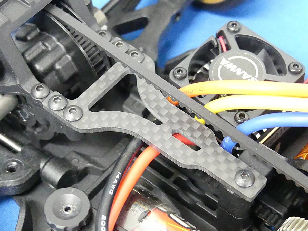 今回の素材は、ヨコモ製ツーリングカーと同じカーボン素材で製作しました。マシンとの親和性も良いと思います。
