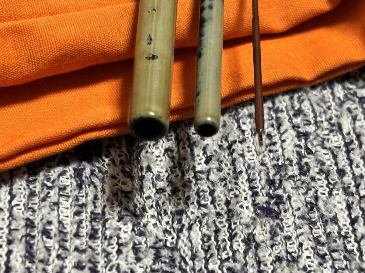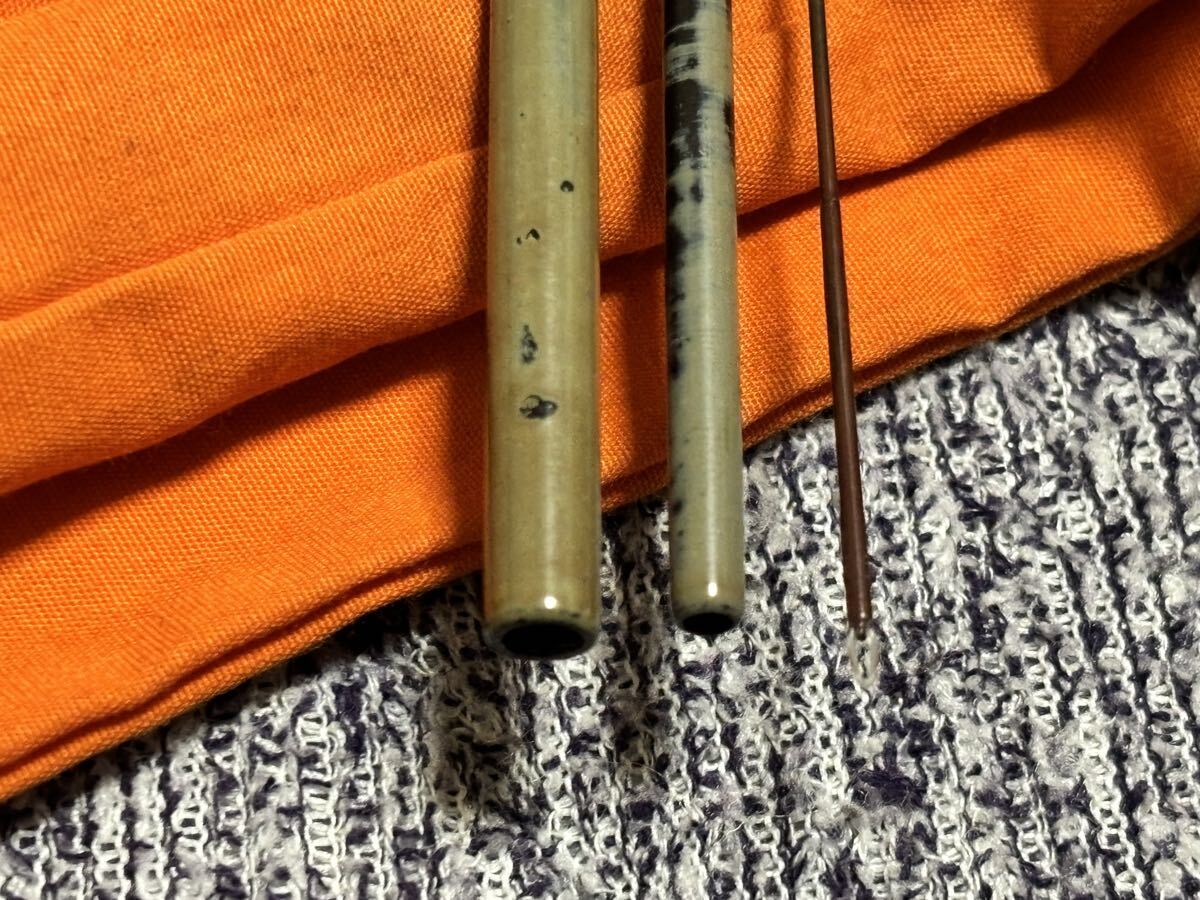 にぎりはエサ汚れや使用感も少なく、綺麗な状態です。表面キズが少しある程度で、塗装の日焼けも少なく綺麗な状態です。繋ぎ込みによる擦れ跡と小キズがあります。口割れ・口欠けはありません。