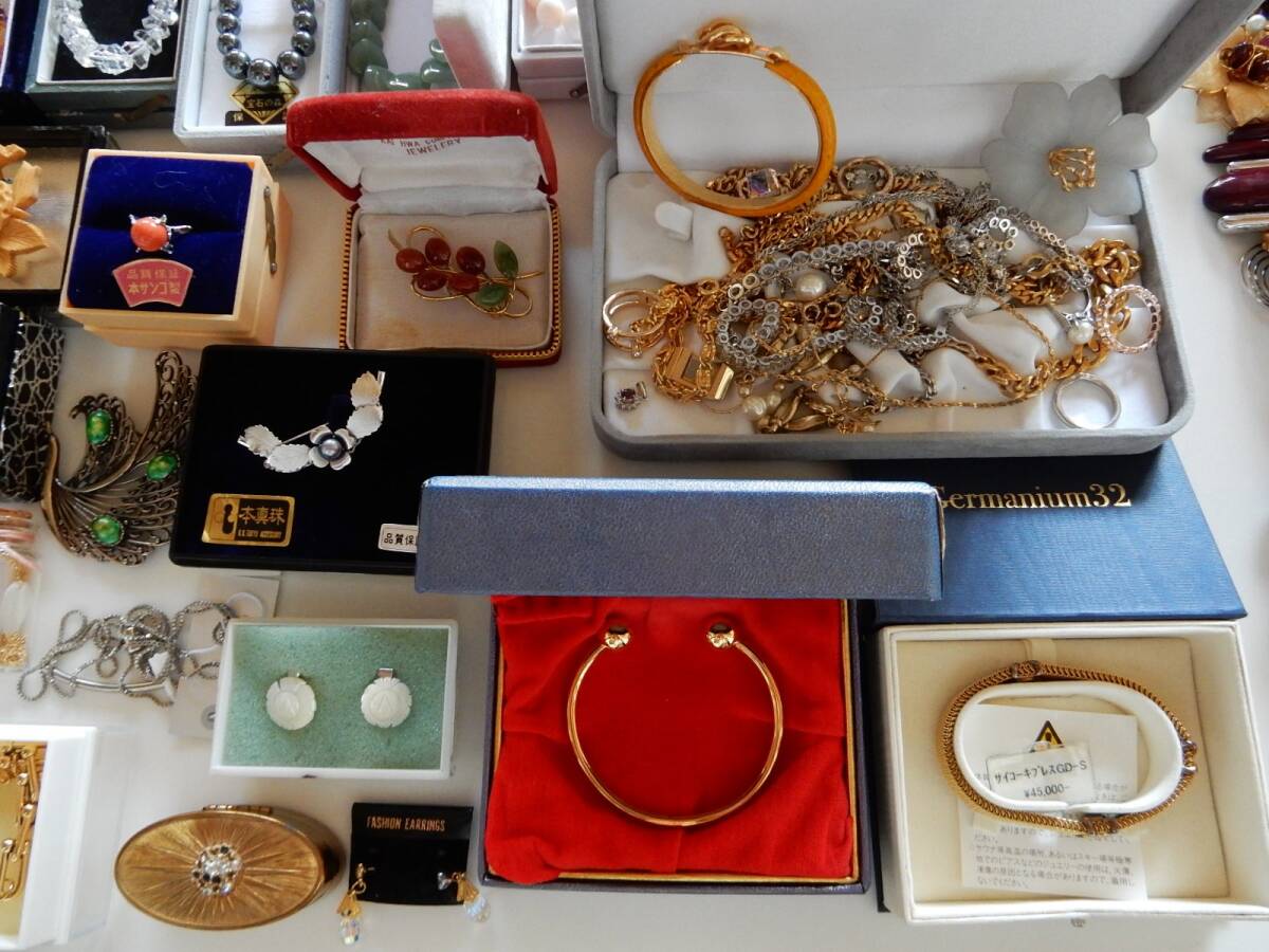 | ご覧頂きありがとう御座います♪ ★('-^v)Thanks(v^-')★ 【 ご入札をされる前に必ずお読み下さい! 】 * キャンセル歴、悪い評価が多い方は申し訳ございませんが入札をお控え下さい。 * 最後までご覧いただき全てにおいてご承諾いただける方のみご入札お願い致します。 * いたずらのご入札はお止め下さいませ! ■ アクセサリーなど いろいろ 大量まとめての出品になります。 ■ 未使用から中古まで御座います。 ■ ネックレス/リング/指輪/ブレスレット/ブローチ/イヤリング/ピアス/キーホルダー/チェーンベルト/ペンダントトップ などいろいろ。 ■ 石取れ、サビ、壊れ、経年の汚れ、くすみ、チェーンや紐の切れ など・・ある物も御座います。 ■ 素材は 珊瑚、シルバー、SILVER、ビーズ、貝、真珠、天然石、パール、ヘマタイト、ハンドメイド物、翡翠、スワロ、鼈甲、記念物、琥珀、水晶、瑪瑙、天然貝 など いろいろ。 ■ 現状でお願い致します。 ■ また、ケースや宝石箱は おまけとしてお考え下さい。 ■ 塊だけでも10キロ超え。 ■ 総重量14キロくらい [梱包材含む] ■ パーツ、部品取りにもいいかと思います。 ■ お写真の物すべてになります。 ■ 完璧なアクセサリーをお求めの方はご遠慮下さいませ。 ■ お安く売切りスタートしますのでノークレームノーリターンでお願い致します(o^-’)b ■ こちらは ★同梱不可★ となります。[ゆうぱっく120サイズ] | |||