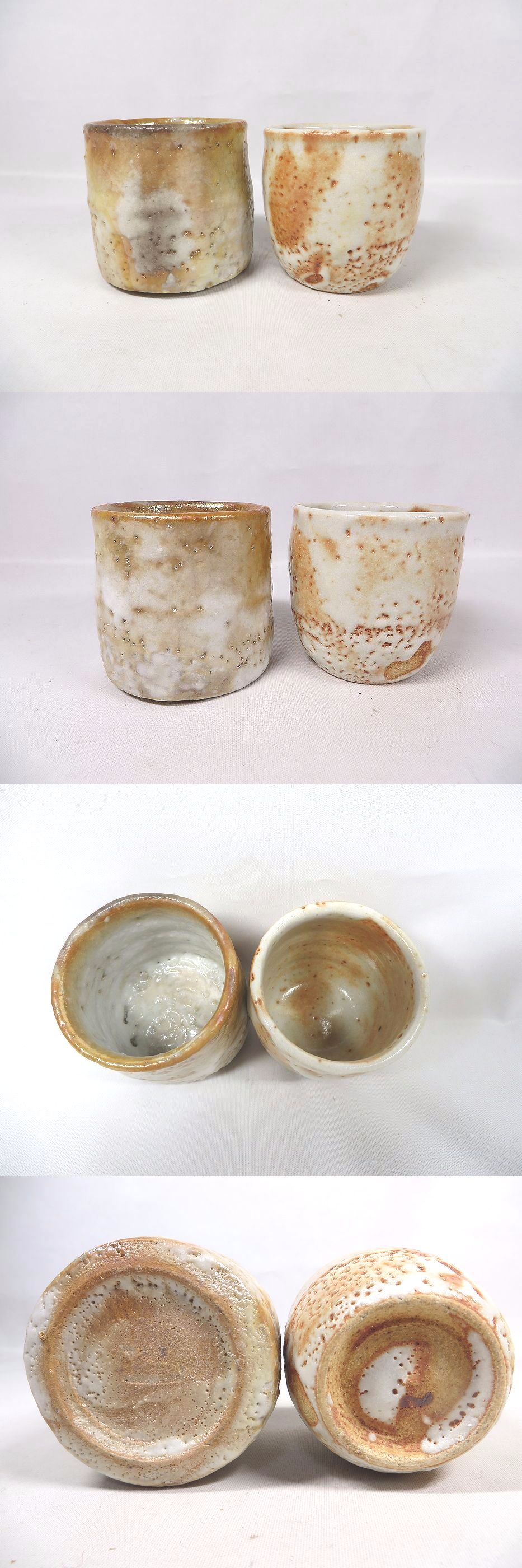 高さ6.8 口径6.6 胴径7、7.3 2点の対比が美しい加藤孝造の志野湯呑です。後から箱書きをして頂いた作品で、貴重な作品です。