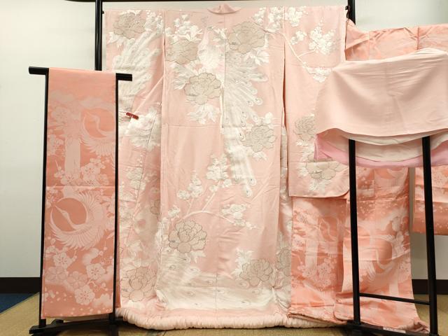 | 【色打掛】 身丈 180cm(肩から) 裄丈 66cm 袖丈 104cm 縫込み 3cm 袖幅 33cm 前幅 27cm 後幅 33cm 着物縫いこみ 内揚げ 0cm 裄お袖側 約1.5cm 身頃側 約0cm 【掛下・比翼仕立て】 身丈 173.5cm(肩から) 裄丈 65.5cm 袖丈 102.5cm 縫込み 8.5cm 袖幅 33cm 前幅 25cm 後幅 31cm 着物縫いこみ 内揚げ 6cm 裄お袖側 約1cm 身頃側 約1.5cm 【帯】 長さ 432cm 幅 26.5cm程 【綿帽子】 縦 38.5cm 横 60cm 《 サイズについてはこちら 》 |