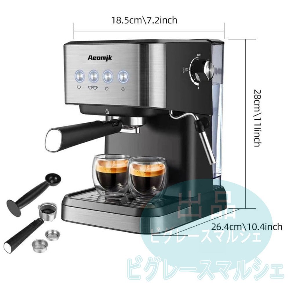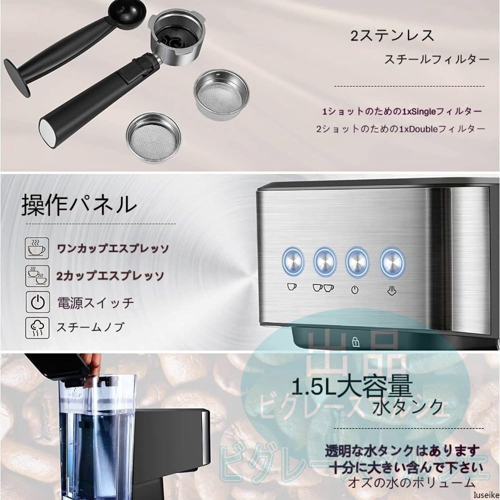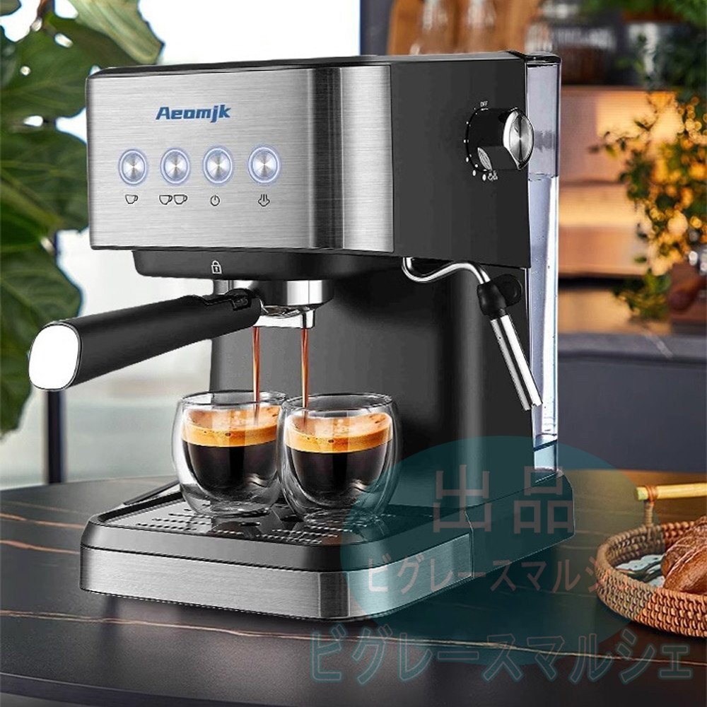 エスプレッソマシン 1050W家庭用 コーヒーメーカー コーヒーマシン ミルク泡立て器 20bar圧力 1050W カップ加熱機能 大容量 1500m hw1413