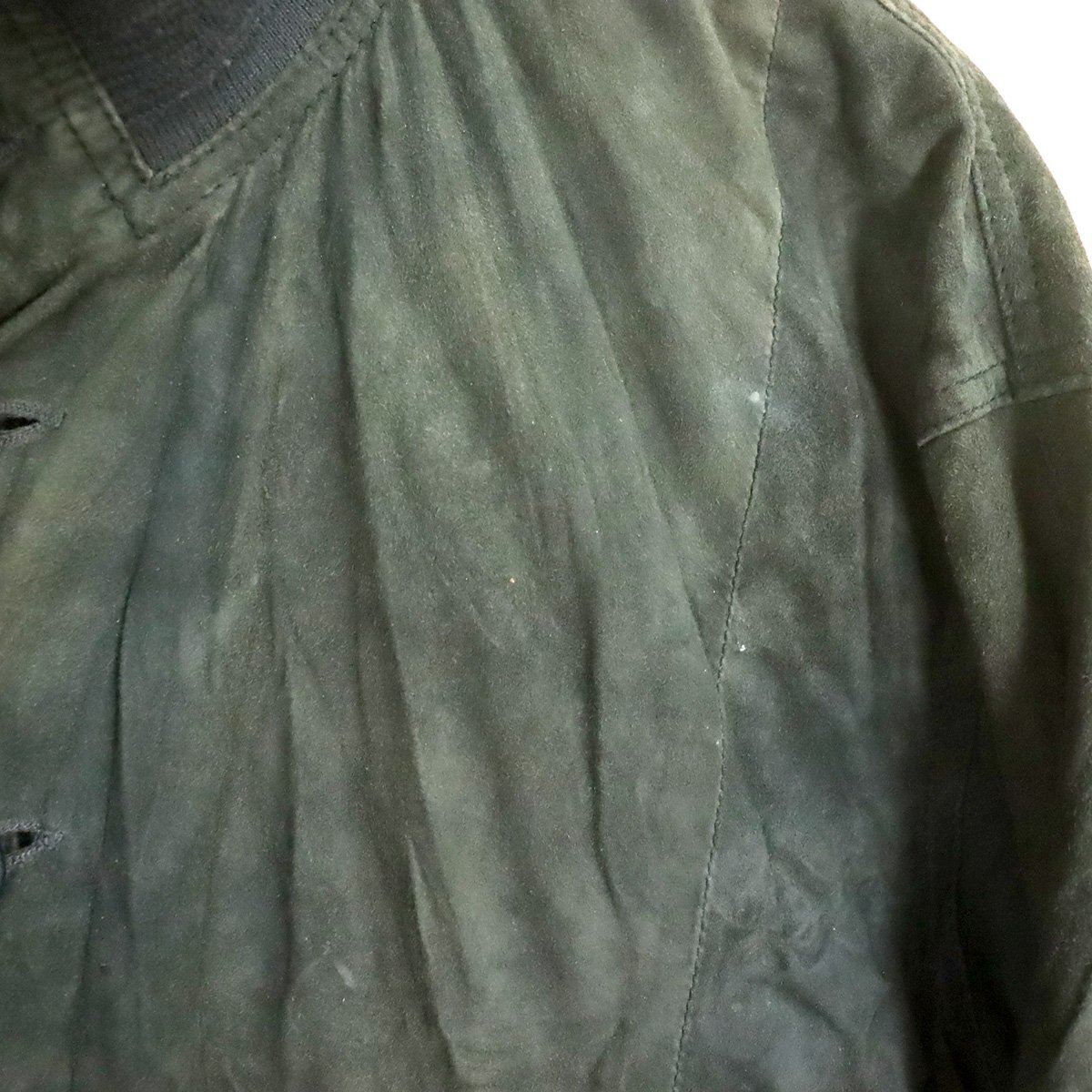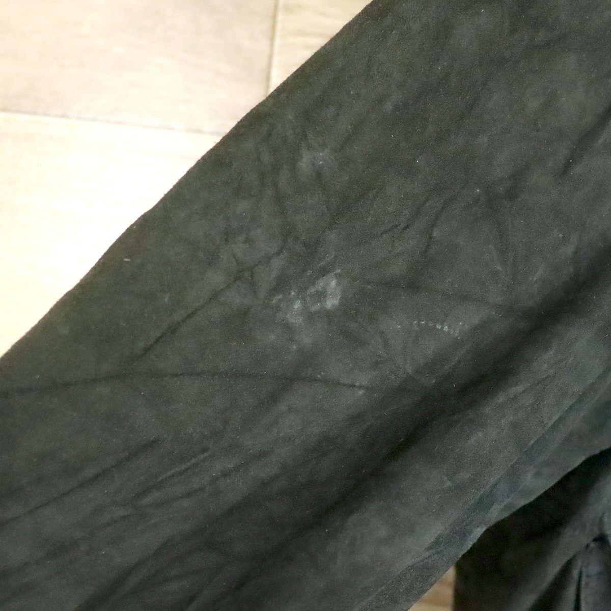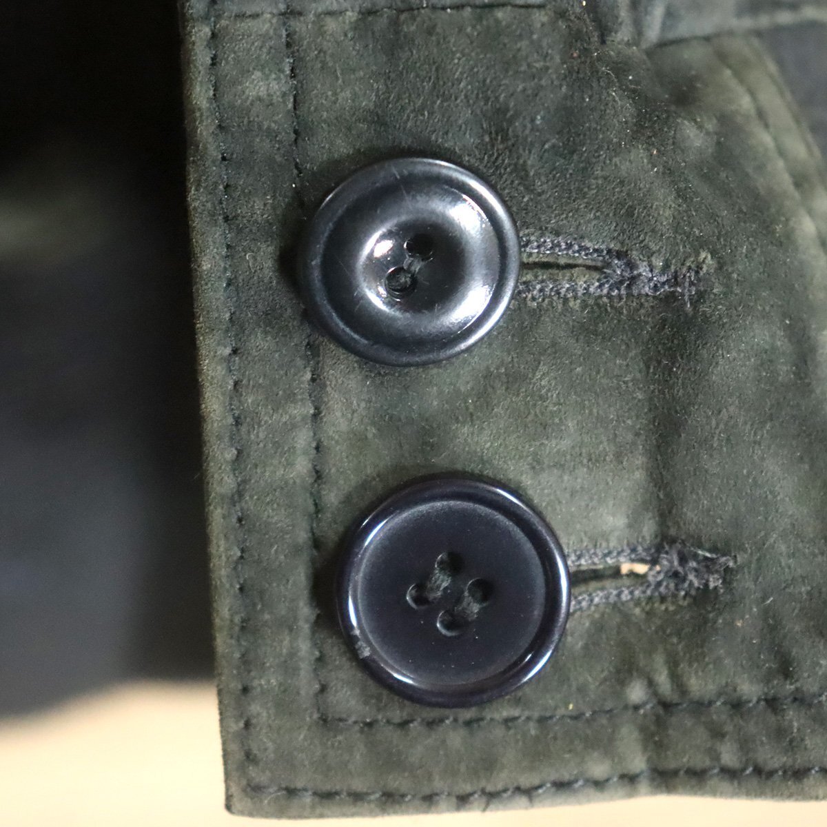 中古品です。使用感があります。第八ボタンの付け替え、袖や襟やフロントなど全体の所々にスエード特有の擦れと汚れがあります。