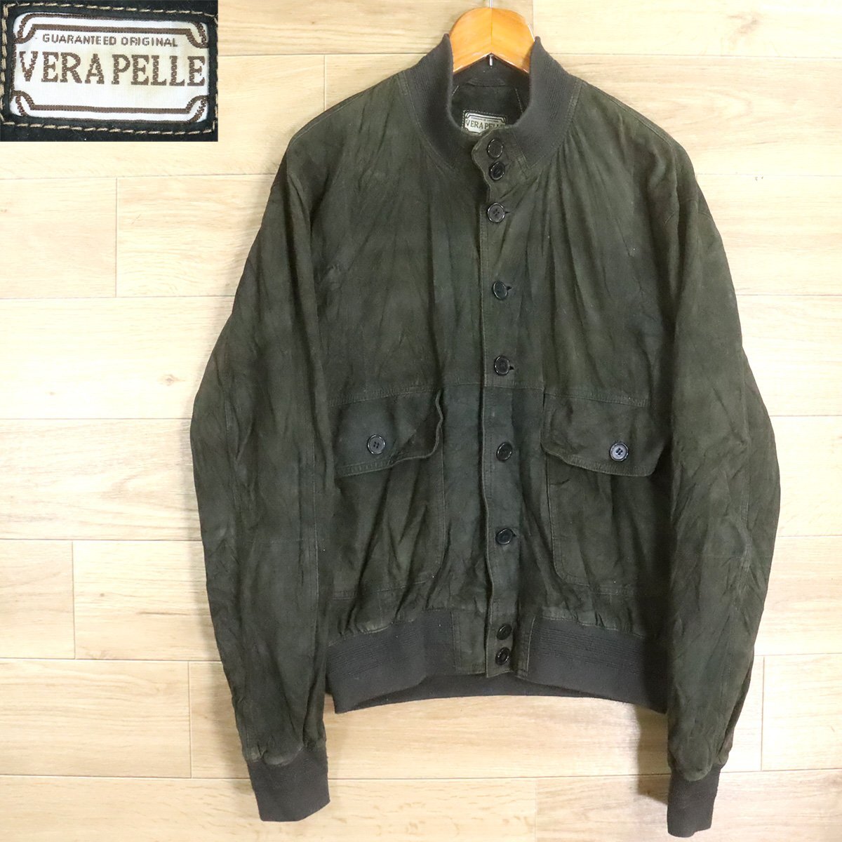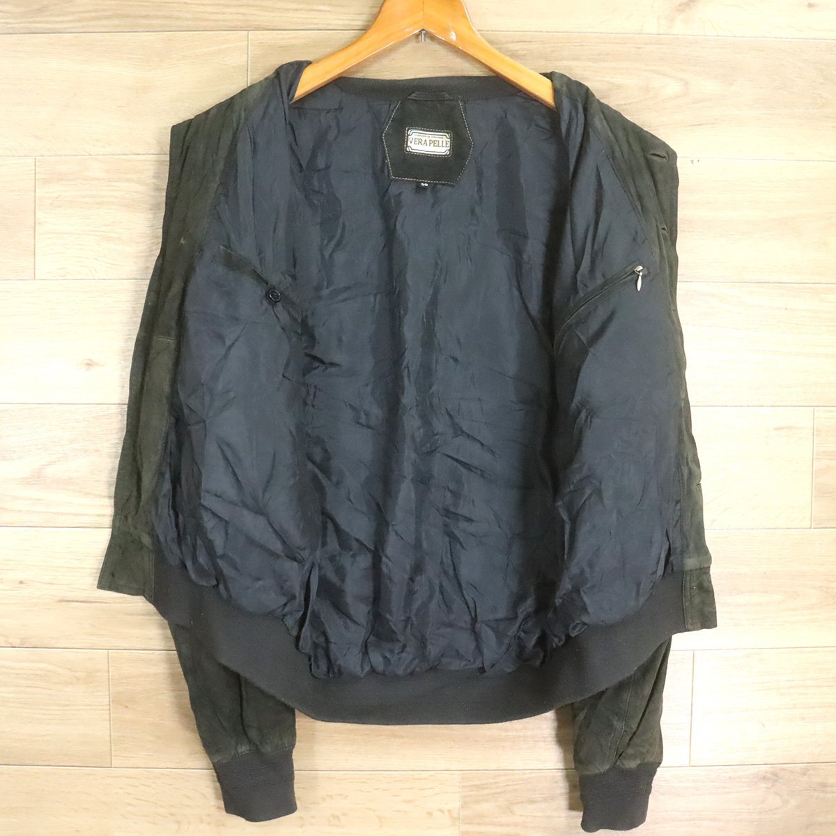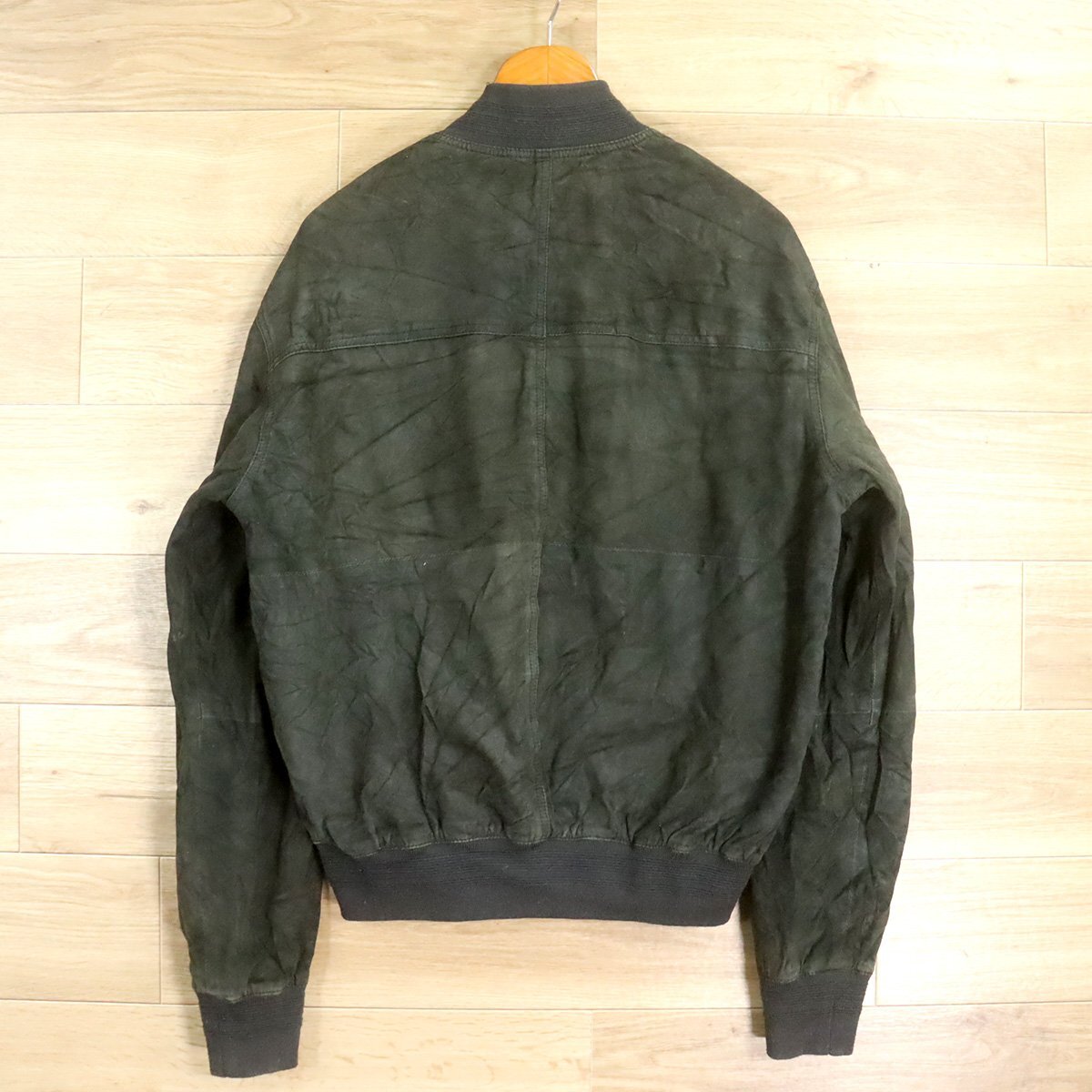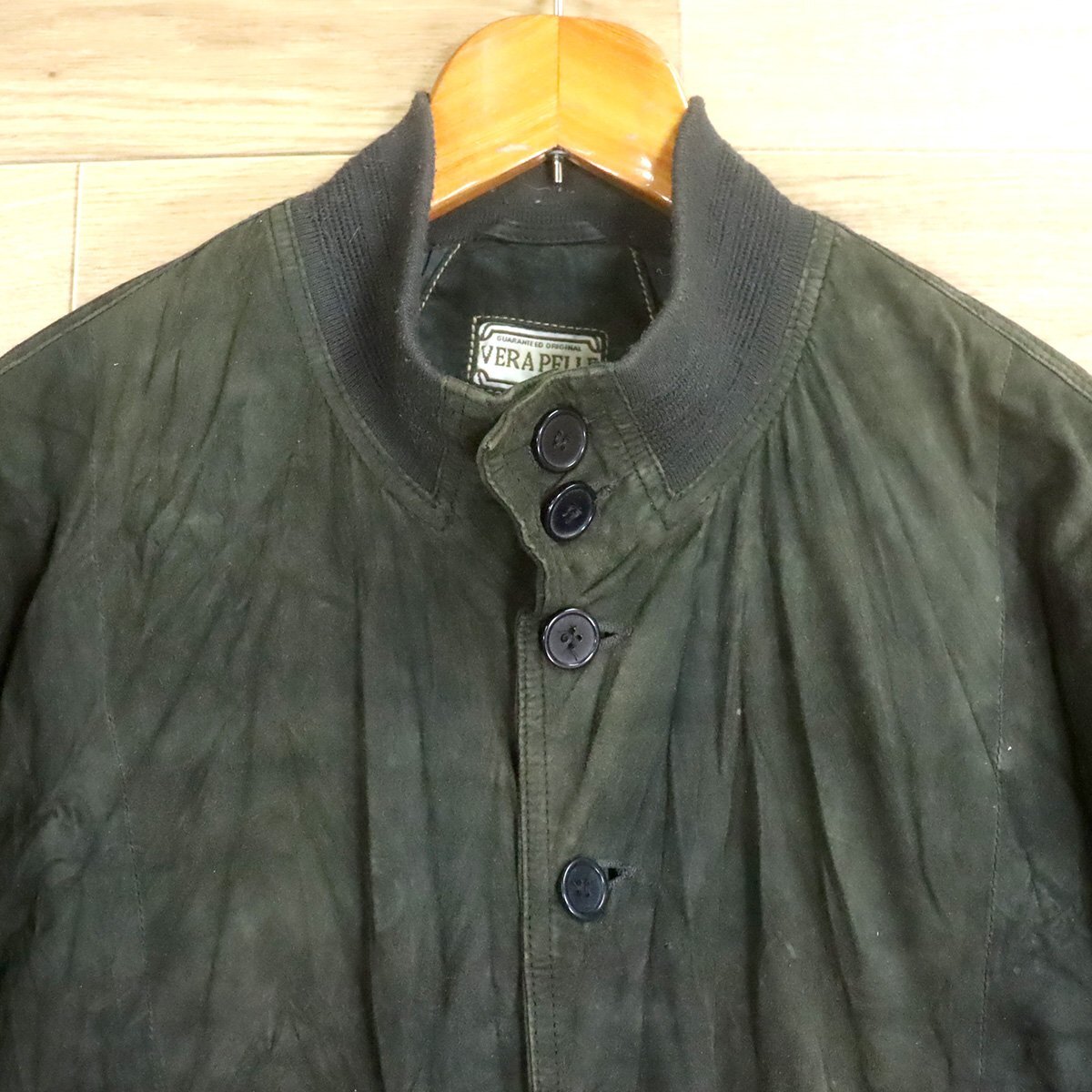 中古品です。使用感があります。第八ボタンの付け替え、袖や襟やフロントなど全体の所々にスエード特有の擦れと汚れがあります。