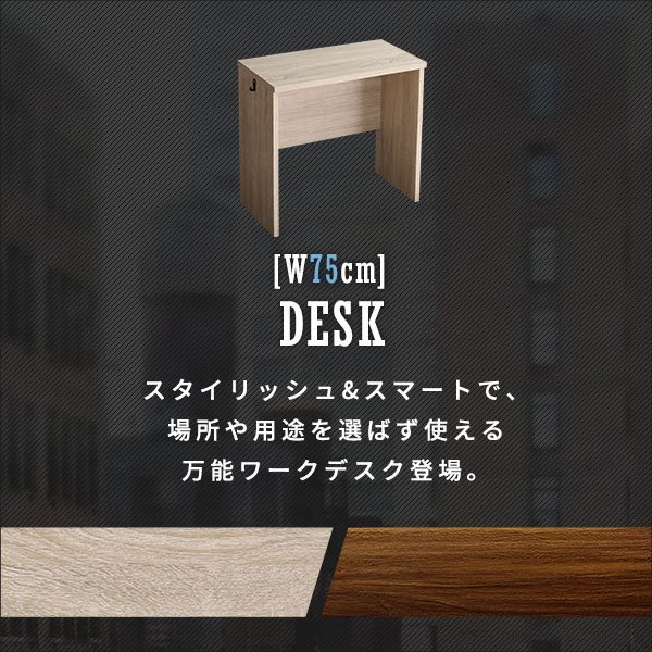 | 子どもから大人まで使えるリビングに合うヴィンテージシンプルデスク75cm幅! スタイリッシュ&スマートで場所や用途を選ばず使える万能ワークデスクです。 教科書&ノートを広々置ける学習机に。 趣味や家事のワークスペースとしても使えます。 しっかりした厚みの天板はキズや書き跡に強いPVC仕様です。 デスクのサイドにはランドセルやバッグが掛けれるフック付きです。 デスクの背面にはライトやパソコンのコードを通せる隙間を作っているので、スッキリ収納できます。 |