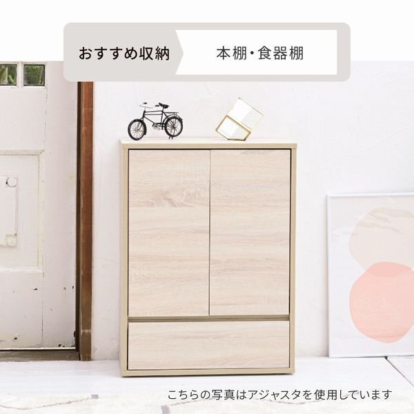 | 【カラー】 ホワイト、ブラウン、ナチュラル、ブラック×ブラウン、ナチュラル×ホワイト 【サイズ】 <外寸> 幅60×奥行29.5×高さ90(アジャスター80.5)cm <内寸> 扉内:幅48.5(有効56)×奥行25.5×高さ57.5cm 可動棚:幅56×奥行25.5×厚み1.5cm(3.2cmピッチ9穴) 引き出し:幅51×奥行23.5×高さ9.5(有効11)cm 【材質】 <ホワイト> [本体:プリント紙化粧合板 天板・扉:合成樹脂化粧合板(PVC) 引き出し前板:合成樹脂化粧繊維板(PVC) 脚:天然木 <ブラウン、ナチュラル> 本体:プリント紙化粧合板 引き出し前板:プリント紙化粧繊維板 脚:天然木 <ブラック×ブラウン> 本体:プリント紙化粧合板 天板:合成樹脂化粧合板(PVC) 引き出し前板:プリント紙化粧繊維板 脚:天然木 <ナチュラル×ホワイト> 本体:プリント紙化粧合板 扉:合成樹脂化粧合板(PVC) 引き出し前板:合成樹脂化粧繊維板(PVC) 脚:天然木 【耐荷重】 天板:(約)10kg以下 可動棚:各(約)5kg以下 扉内固定棚:(約)5kg以下 引き出し:(約)5kg以下 【生産国】 中国 【梱包】 サイズ:83×33.2×19.5cm、重量:18.8kg 【その他】 ・可動棚2枚 ・背面化粧なし ・脚裏フェルト付き ・アジャスター付き 【組み立て品】 お客様による組み立てが必要です。 【ご注意】 ・サイズ、重量は概算です。 ・商品カラーはご使用のモニターによって実際の明るさや色と異なって見える場合がございます。 |