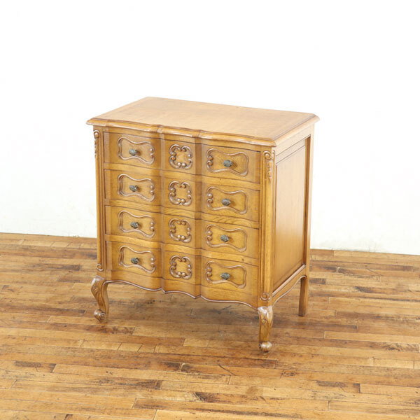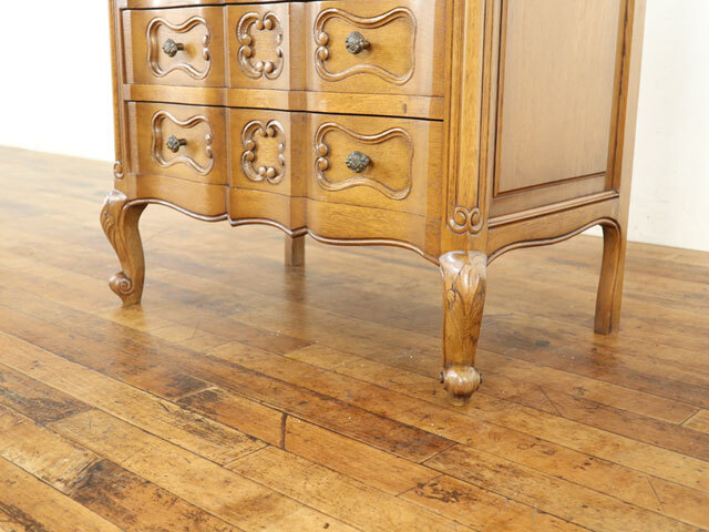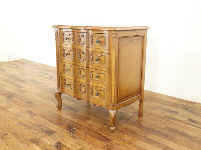 アンティーク チェスト 引き出し4段 小ぶり 猫脚 可愛らしいサイズ感 引き出し前面の装飾が印象的 フランスらしい華やかさ フランス 65407