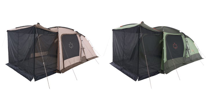 別売りの対応テントに取り付けるだけでリビングスペースが拡張し、広々快適な3ルームが実現します。対応テント▼・neos PANEL スクリー ンドゥーブルXL・Tradcanvas PANEL ドゥーブル XL