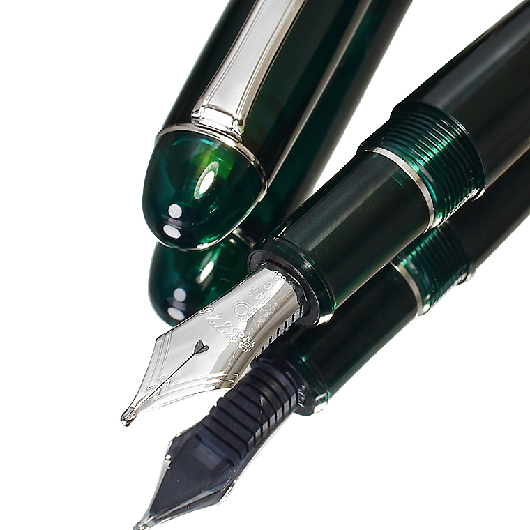 | 【PLATINUM/プラチナ】 #3776 CENTURY/センチュリー 大型ペン先 14金 C(極太) ロジウムフィニッシュ #41 ローレルグリーン フレッシュなままインクが使えるスリップシール機構搭載! 新品未使用 ![]() PLATINUM #3776 CENTURY PLATINUM/プラチナ社の定番モデル、 「#3776 CENTURY/センチュリー」14金万年筆 ローレルグリーンをご紹介します。 セーラー・パイロットと並び、高品質で実用的な万年筆を次々と送り出しているプラチナ。 これほどまでに完成された万年筆は他にはないといっても過言ではないほど、 素晴らしい品質と機能を兼ね備えた万年筆です。 ![]() インクの乾燥を防ぐ「スリップシール機構」を新たに組み込んだ革新のキャップ。 書き味を左右するインクの流動を見直し開発された新ペン先。 1919年創業から約一世紀。培われた伝統とたゆまざる技術の集大成として ここに「熟成の#3776《センチュリー》」誕生。書く喜びを追求しこれからも 進化し続けます。 ![]() ◆「スリップシール機構」とは 従来の万年筆はペン先をカバーし気密構造にした場合、キャップの開閉で ポンピングと云われるインクの噴き出しを起こし、これを防ぐことは 極めて困難とされていました。通気を持たせる開放構造にするしか方法が無く、 次の問題がありました。 1.インクの水分が蒸発し、だんだん濃くなり、かすれ気味になる。 2.3 ~ 6 ヶ月使用しないと、乾燥して書けなくなる。 3.インクの水分が揮発して染料分が内部構造にこびり付き、 インククリーナーセットによる洗浄が必要になる。 最悪の場合、メーカー宛に修理(分解して洗浄)を依頼しなければならなくなる。 プラチナ万年筆では、万年筆では当たり前とされてきたこの問題を、 お客様の立場に立って原点に戻り、なぜできないのかを突き詰め、 この課題に取り組みました。 回転ネジ式キャップで初めて耐久性を考慮した完全気密キャップ 「スリップシール機構」を実用化する事により、 プレピー万年筆 やプレジール万年筆のスナップ式に続き、 実用化困難とされていた回転ネジ式キャップの高級万年筆でも 完全気密を可能にしました。 どんな高級万年筆でもインクが乾くと書き出しがかすれ、ストレスを感じて しまいますが、このお値段で「スリップシール機構」となれば 是非1本は手元に置いておきたいのではないでしょうか! ![]() 大型のペン先は、しなりのある14金ながらも驚くべき耐久性を備えています。 100年以上継承され続けている、伝統的なプラチナの商品設計は、 ヘビーユーザーを納得させる品質の高さを誇っています。 ![]() 「#3776 センチュリー」。 現代に合った素晴らしい万年筆とは何か、 外観のデザイン、心地良い筆記バランス、書き味、スムーズなインクの流れ、 最大の欠点とも言えるインクの乾燥を防ぐことが出来ないかを検討し、 全てのパーツを新たに設計し誕生しました。 ![]() -*-*-*-*-*-*-*-*-*-*-*-*-*-*-*-*-*-*-*-*-*-*-*-*-*-*-*-*-*-*-*-*-*--*-*- <詳細>】【PLATINUM/プラチナ】 CENTURY/ センチュリー 14金万年筆 ローレルグリーン 品番 :PNB-18000CR#41 ペン先 :大型14金 サイズ :C (極太) 仕様 :ローレルグリーンカラー調AS樹脂ボディ 機構 : コンバーター・カートリッジ 両用式 長さ : 139.5mm 太さ : 15.4mm(最大径) 重さ : 20.5g 付属品 : 純正ボックス、カートリッジ1本(ブルーブラック) 説明書・コンバーター(700A) 状態 :新品未使用 ※新品ですが、キャップに1.5mm程の傷が3本ございます。 サムネイル9枚目画像をよくご確認の上、 ご入札をお願いいたします。 -*-*-*-*-*-*-*-*-*-*-*-*-*-*-*-*-*-*-*-*-*-*-*-*-*-*-*-*-*-*-*-*-*--*-*- |