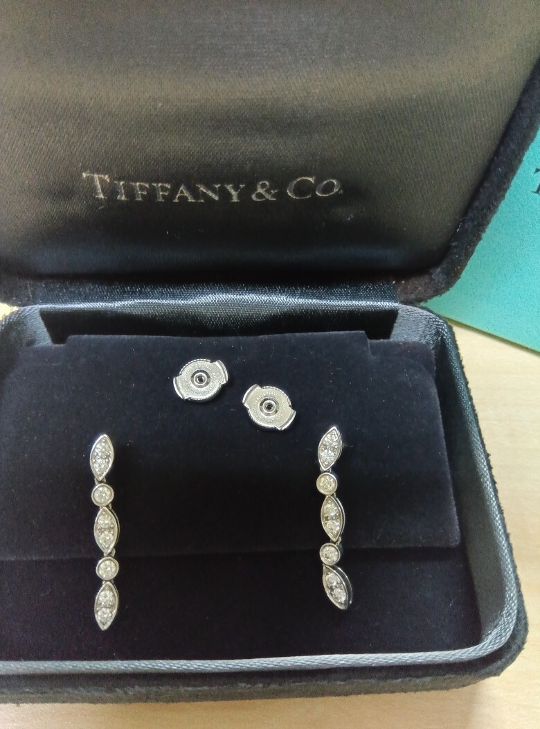 ティファニー ジャス スウィング ピアスです。ジュエリー整理のため出品しました。気に入って使っていますのでusedとなりますが、目立った傷はありません。即決の方にはティファニーの紺色のケースと水色の箱に入れて送ります。(目立つものではありませんが、水色の箱は少々汚れがあります)他には付属品はありません。