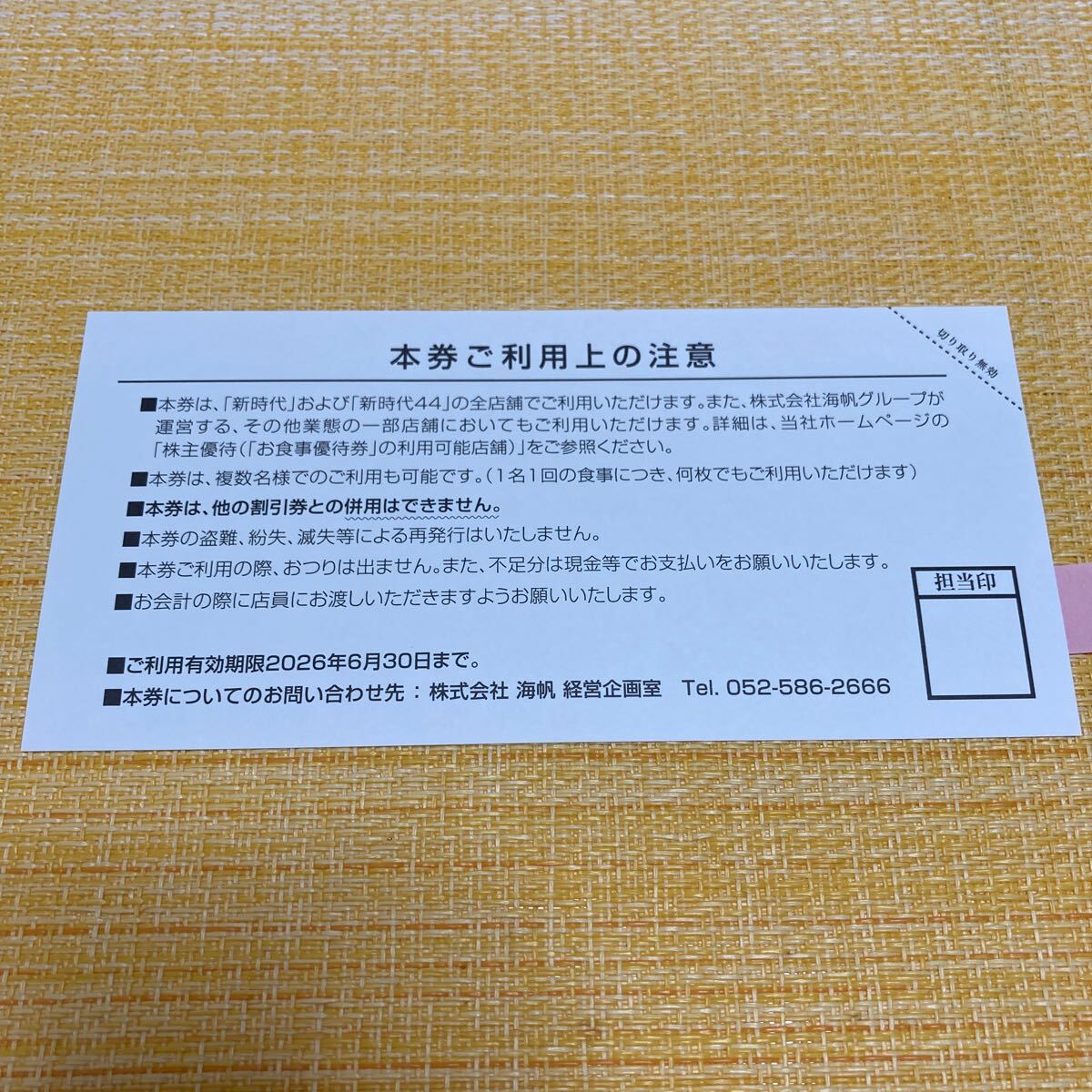 商品名 : 海帆 株主お食事優待券 500円×4枚