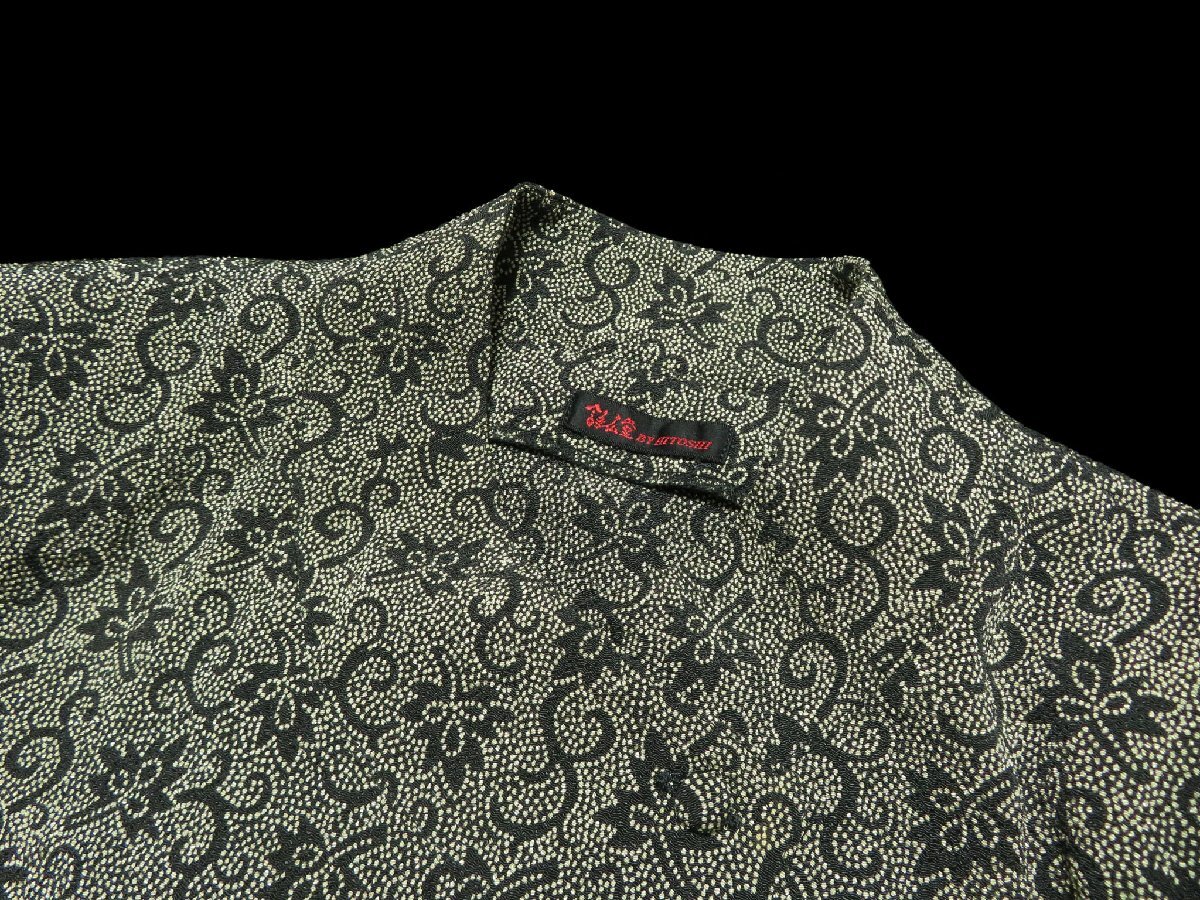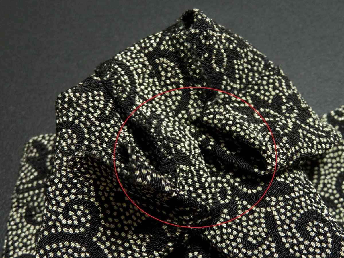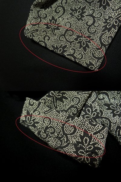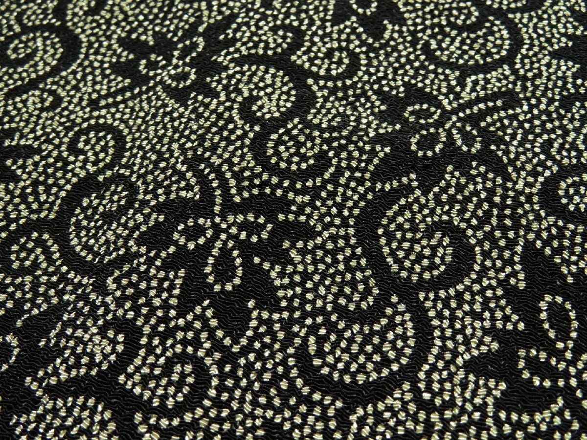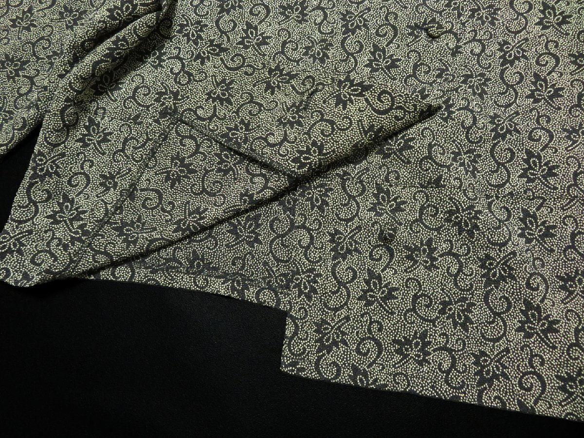 上品な光沢があるちりめん織りで、ブラック×ベージュのドット和花柄がプリントされています。