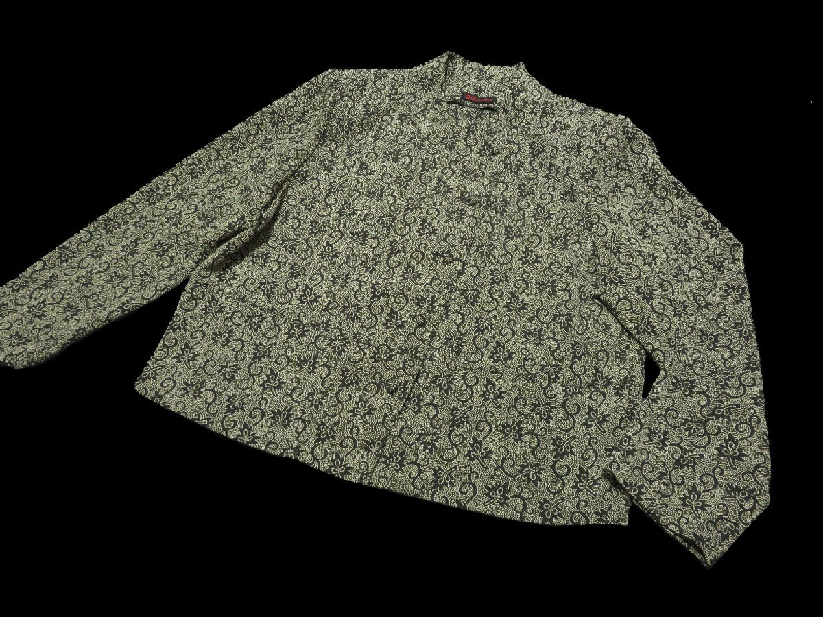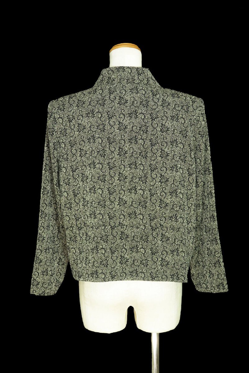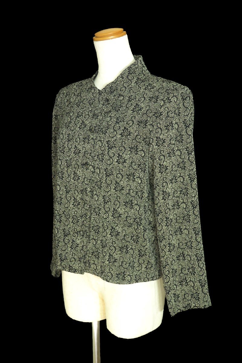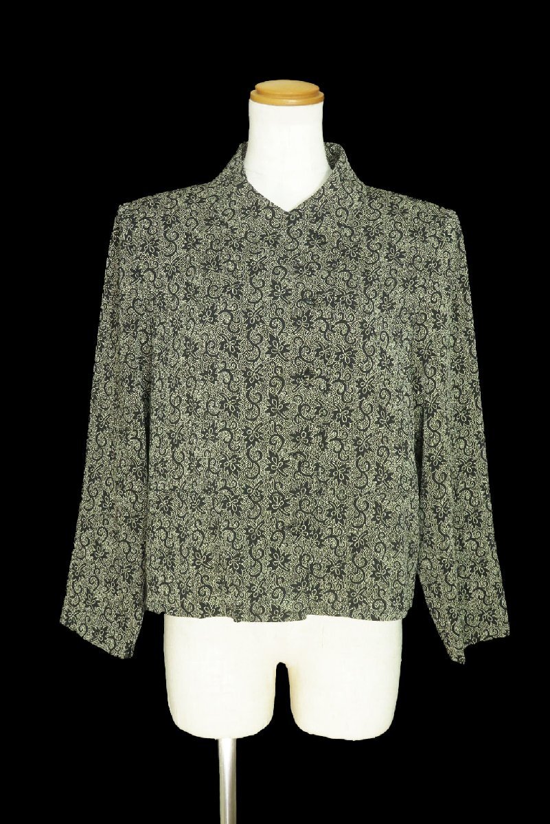 詩仙堂/洗えるちりめん織りドット和花柄ブラウス:黒×ベージュnl640