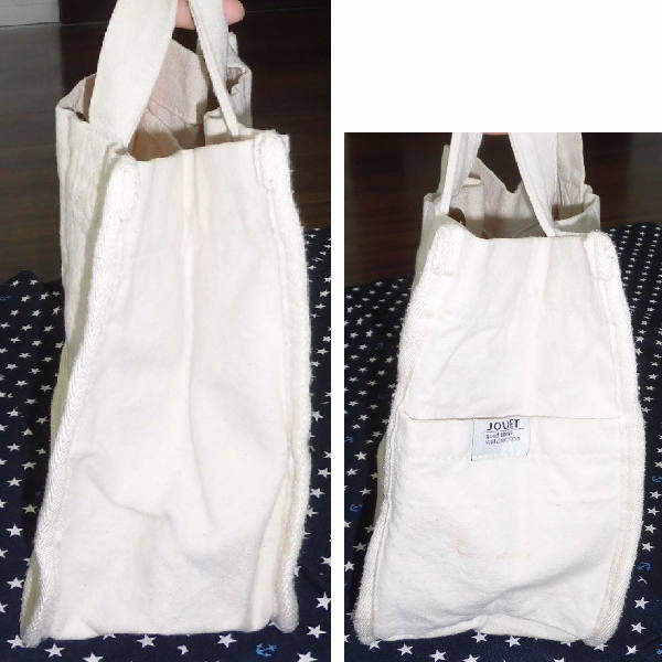 | ランチバッグとして使用していましたので、表面に薄いシミが数点(底部分多め)あります。 それ以外は比較的キレイです。 お弁当やちょっとしたお出かけに最適なサイズのランチトート。 小さいながらもマチがあるので、見た目以上に収納可能。 サイドにはスマホがちょうど入るオープンポケット付き。 表と裏側で違う可愛いロゴマークとプリントが入っていてその日の気分やコーディネートに合わせてWフェイスで楽しめます。 帆布の柔らかさでライフスタイルに寄り沿うバッグになっています。 ☆ 色はアイボリー ☆ サイズは、縦22センチ、横24センチ、まち12センチ ☆ コットン ☆ 前後ろにプリント入り ☆ サイドポケット1つ、内ポケット2つあり ☆ マグネットボタン開閉 ジョエット | ||