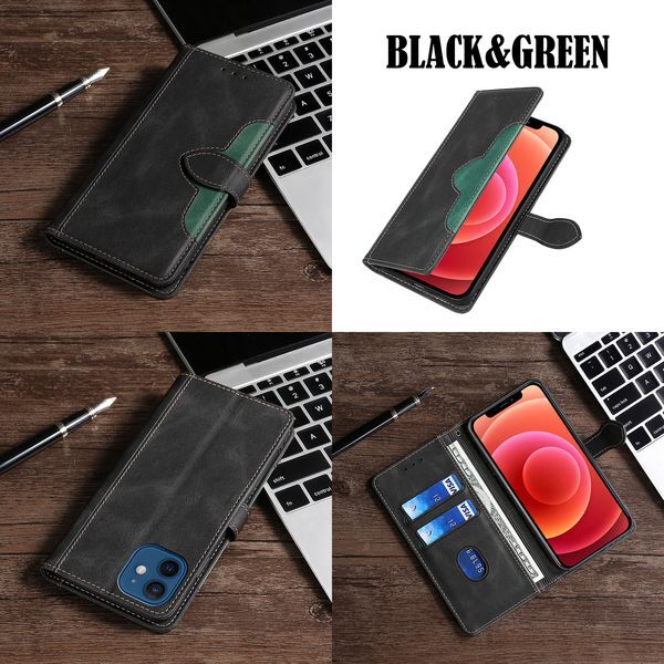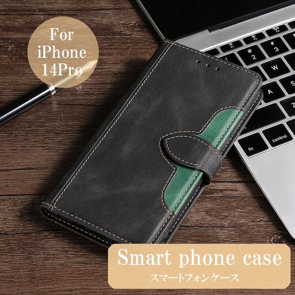 | 商品名 | iPhone 14Pro 用 スマホケース 新品 手帳型 レザー 耐衝撃 アイフォン カード収納 携帯ケース TPU ツートンカラー ベルト スマホカバー ブラック&グリーン |