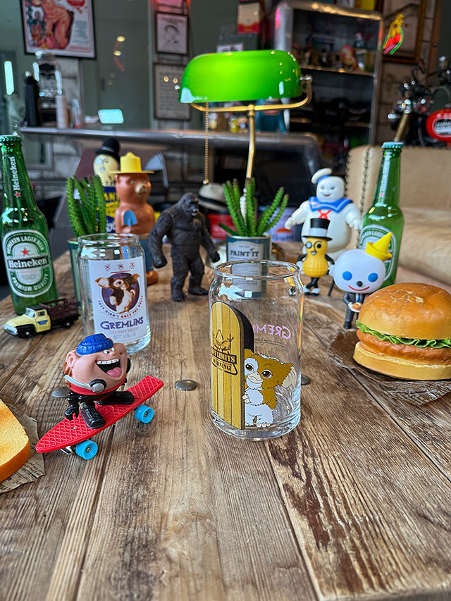 ギズモの名作ポスターがプリントされた缶型グラスです。