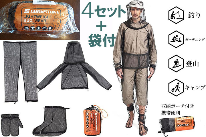 ② 新品 虫除け パーカー 防虫 4点セット 男女兼用 ネット 蚊対策 通気性 アウトドア ガーデニング 家庭菜園 L 大きいサイズ 帽子 虫よけ
