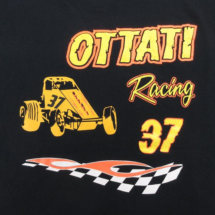 【商品名】 XL★古着 半袖 Tシャツ メンズ レーシングカー OTTATI 大きいサイズ クルーネック 黒