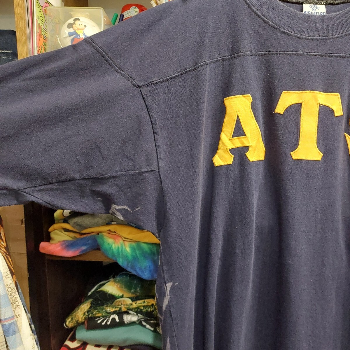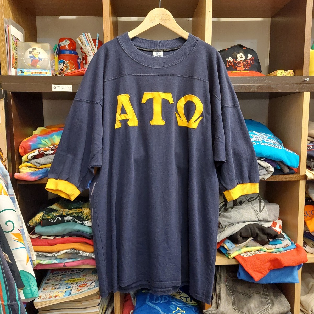 古着 USA製 90S フットボール Tシャツ リンガー ヴィンテージ ギリシャ文字 刺繍 ネイビー XXL ビッグサイズメンズ 07I0701