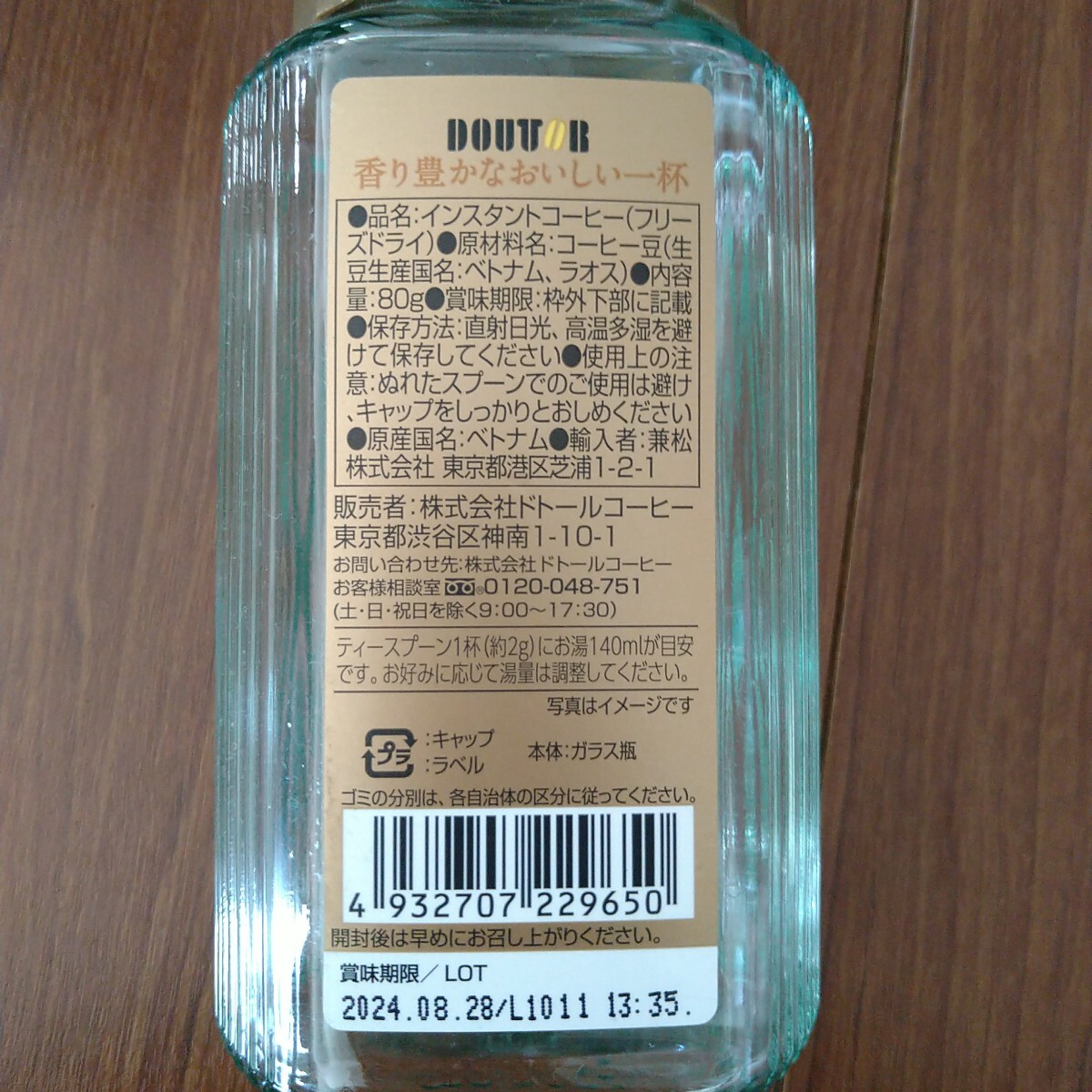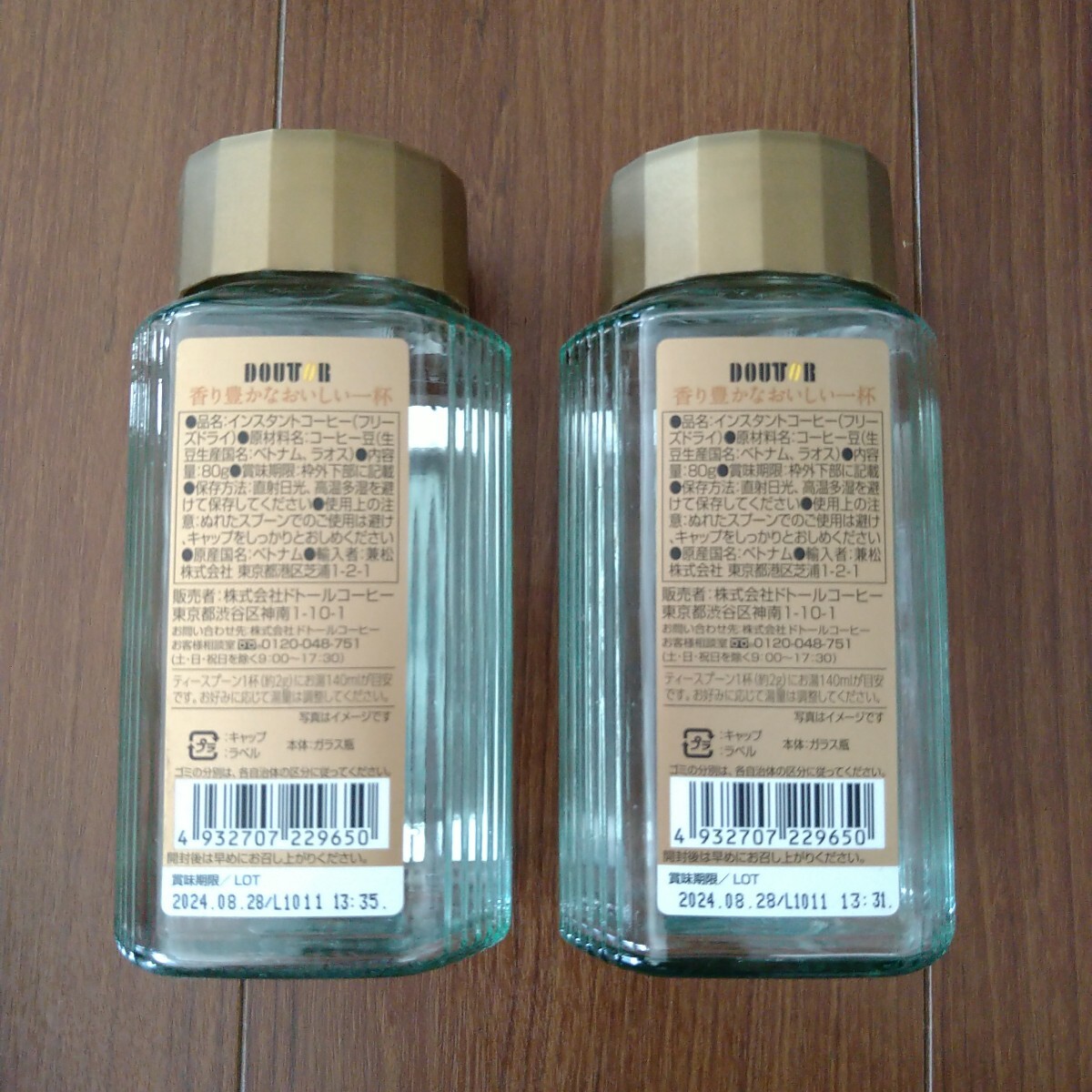 ドトールコーヒー 香り豊かなおいしい一杯 インスタントコーヒー 80g 空き瓶 2本セット 6角形 現状販売品です。
