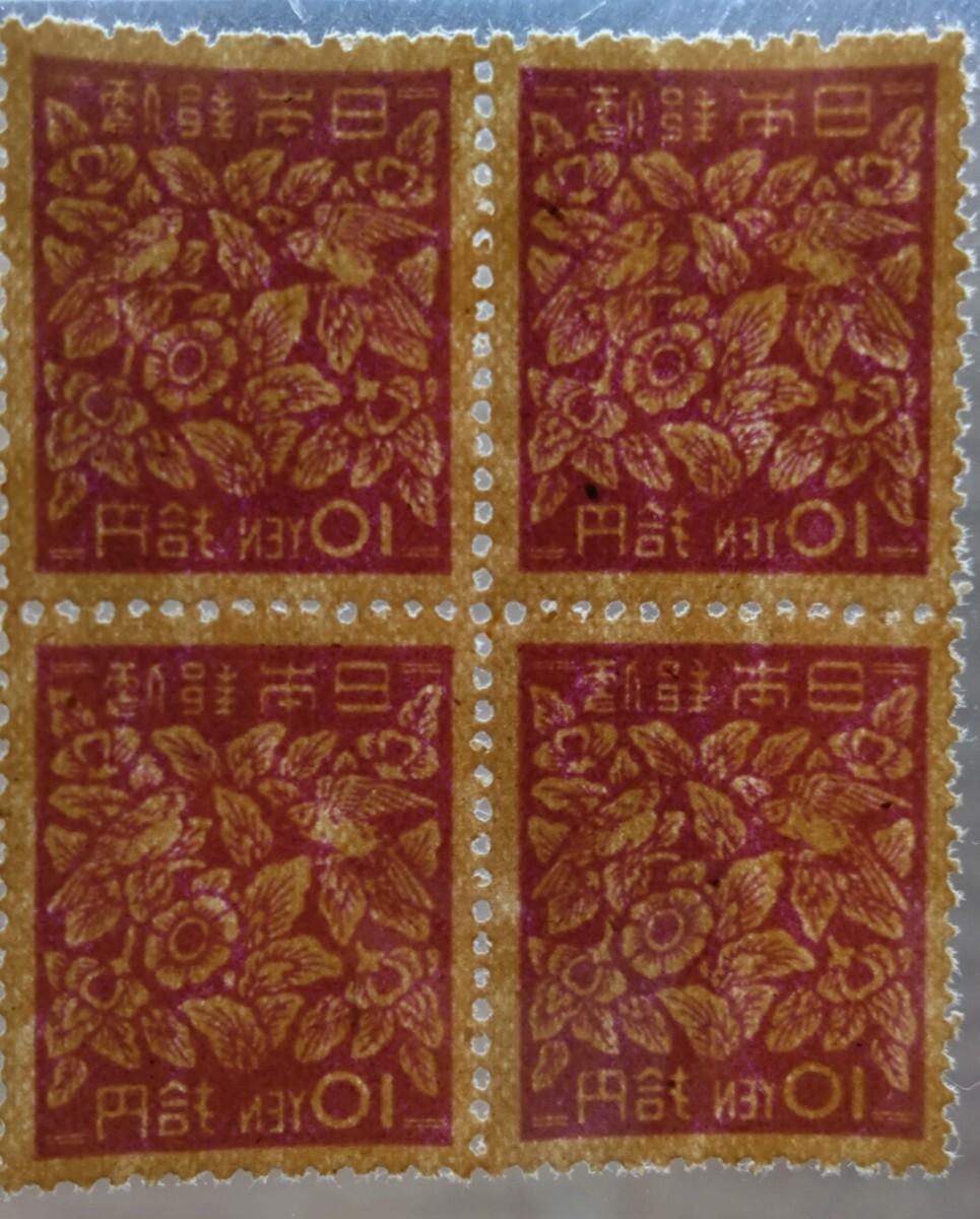 | 普通切手 3次新昭和【螺鈿模様(らでんもよう)田型】10円切手 裏面のりアリ 透かしアリ 未使用 美品 |