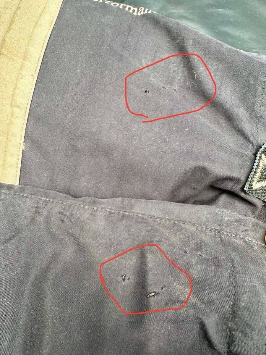 膝から上はだいぶキレイですが、膝から下グラベルガードは枝やブッシュによる小さなひっかけ穴あります。