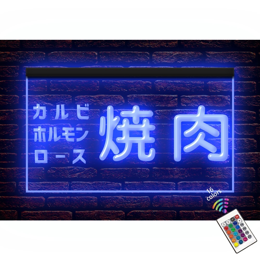 【RGB24キーリモコン仕様 16色発光タイプ】260155//LED ネオンサイン 焼肉 カルビ ホルモン ロース 営業中■サイズ(約):W550mmxH300mm