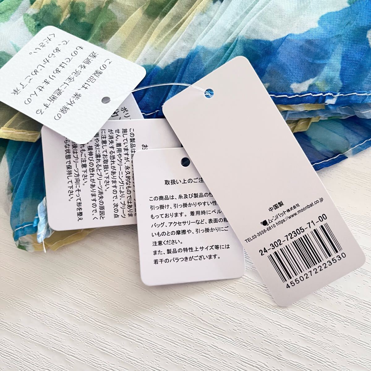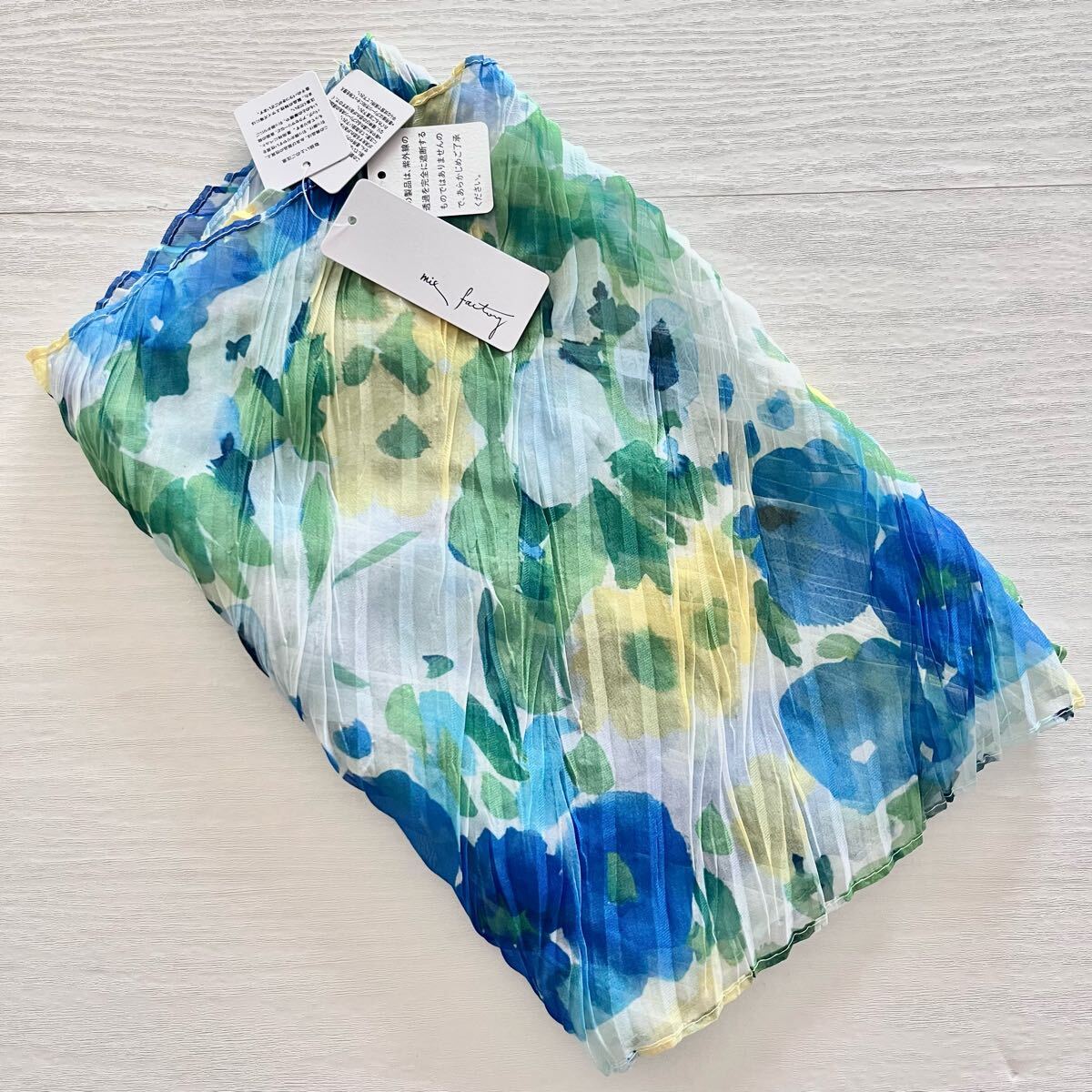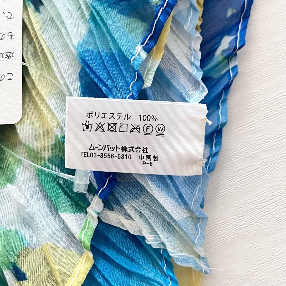 MOONBAT ムーンバット 水彩フラワープリーツストール UV対策 サックスブルー
