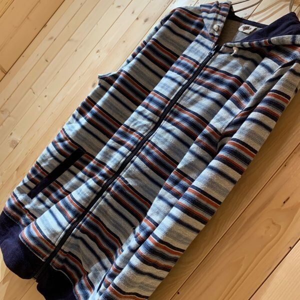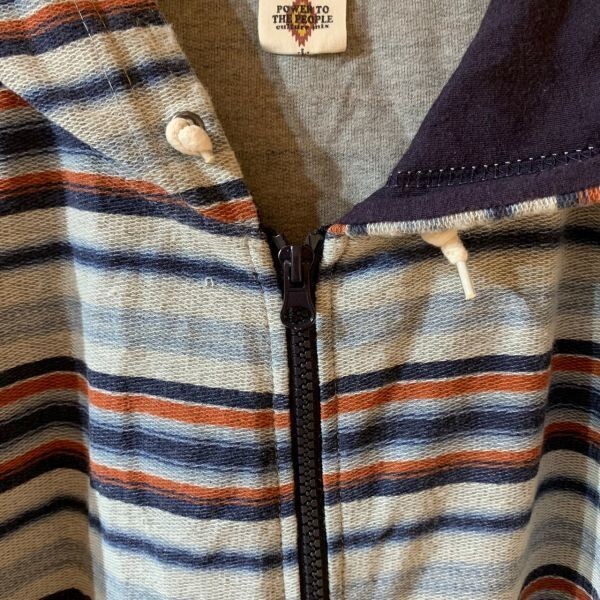 [KWT2318] POWERTOTHEPEOPLE フード付き長袖ジップパーカー メンズ ブルーボーダー L 60