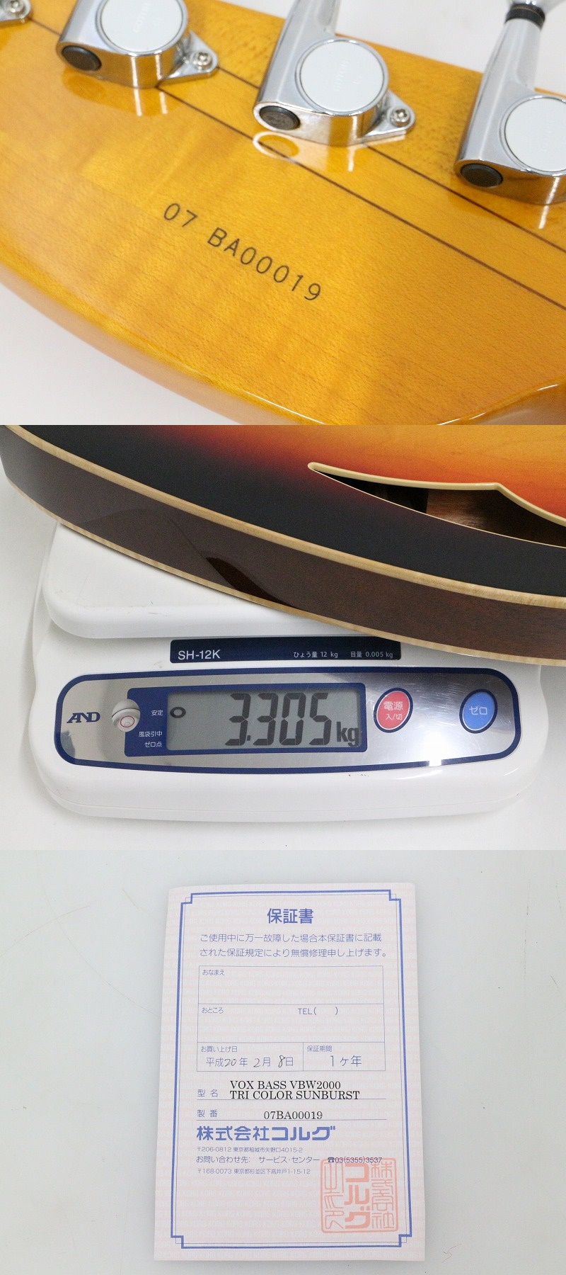 ■メーカー : VOX ■型番 : VBW2000 ■本体重量 : 3.3kg 主観になりますが、ネック/ほぼストレート フレット残/7分位かと思われます。 ※弊社実測の為、多少の誤差はご了承下さい。 【商品の状態 当店での確認内容】 動作及び音出し確認済みです。状態良く美品と思われます。 「商品の状態」に関しましては当方主観の目安となります。外観などは中古品で個人差もありますので詳細は画像にてご判断ください。 画像にて不明な点はご質問下さい。 出品商品は画像の物ですべてになり画像に写っているもの以外は付属いたしません。 ※撮影用の備品(スタンド等)は付属いたしません。 ※弦は消耗品となりますので、おまけとしてお考えください。 ※トラスロッドが付いてる製品に関しましては現状維持のため未確認となります。 【送料 全国一律 3,600 円 沖縄、離島は別途お見積り】 ※送料がお得になるサービスです(下取りシステムのご案内です) 当ストアでは商品を安全にお届け出来るよう提携運送会社と協議の上、発泡緩衝材や強度段ボールの使用等 運送会社が指定する梱包方法や資材を採用しております。 より安全にお届け出来るよう商品仕様により梱包サイズが大きくなる場合や個口数が増える事がございます。 【当ストアオークションルールを入札前に必ずご確認ください。】 【落札後の取引手順】 ・落札後は取引ナビにて、必要事項をご入力後、送信ください。 取引終了後48時間(土、日は除く)以内に入力をお願い致します。 ※ご連絡が頂けない場合は落札者様都合でのキャンセルとさせていただきます。 ・落札代金(商品代金+消費税+送料)の入金をお願い致します。 ※大型商品の場合は送料確定後の決済となる為取引ナビを入力頂き、当ストアより送料のご案内が来るまでお待ちください。(土曜、日曜、祝日の場合は翌営業日より順次ご案内いたします) ・お支払い方法はクレジットカード/PayPay残高払い/PayPay銀行/ゆうちょ銀行のみです。 ※商品代金引換(代引き)のお取り扱いはしておりません。 ※領収証の発行が必要な方はご連絡ください。 ※銀行振込の際の振込手数料はご負担願います。 ・入金確認後に出荷手配を致します。 (原則入金確認後3営業日以内に発送いたしますが、大型や重量のある製品はお時間をいただく場合もございます。) ・発送は当店指定の運送会社の元払いのみでの発送となります。 ※他の運送会社、送料代引き等は致しかねます。 ※落札者様ご自身での運送会社の手配いただく事も可能ですが荷物事故の責任の所在の問題上、梱包は致しかねます。 ※店頭にお越し頂き手渡しも可能(福岡市早良区)です。ご希望の方はご落札後にご連絡下さい。 ・大型/重量物商品の送料につきましては商品の特性上、荷降ろし状況等により送料が大きく前後し運送業者に別途見積りが必要な為、早めのお問い合わせにてお見積り上、入札をお願い致します。 【初期不良の保証について】 ・商品到着後の初期動作不良、また配送中の事故による破損、不具合が有る場合は、商品発送後10日以内に当ストアまでご連絡ください。当ストアでは修理での対応を優先させて頂きますが、修理不可の場合は全額返金させて頂きます。 (商品代金+消費税+送料のお支払い頂いた金額となります) 【初期不良の保証の対象外について】 次の場合は保証の対象外となりますのご留意ください ・ジャンク商品、現状商品、難あり商品での出品商品。 ※難あり商品に関しましては動作確認時に一部動作不良が確認された商品になり、記載している動作確認以外にも、動作不良がある可能性もございます。こちらに関しましても保証対象外となりますことをご理解ください。 ・年代物のオーディオなどで、当店にてわからない範囲で部品が交換されている場合 ・楽器類の特殊機材(マイクロスコープ等)での確認までは行っておりません。気になる方は事前にご質問いただくか、入札をお控えください。 ※初期不良に関しましては【商品の状態】に記載のもの、またそれによって起因する動作不良は対象外です。 ※商品発送後10日を過ぎてのご連絡は対応が出来ませんので、商品が到着しましたらお早めに確認をお願い致します。 【メーカー保証の加入・継承】 ・未使用品、展示品やメーカー保証期間が残っている商品に関しまして、メーカー保証の加入、継承が必要な方は、落札後取引ナビ内にて当ストアにお知らせください。商品発送までにご連絡いただけない場合、メーカー保証の手続きを承れない場合があります。 【評価について】 ・評価不要の場合、必ず取引ナビの「要望欄」にてお知らせください。それ以外でご連絡をいただいた場合、対応できない可能性がございます。一度行った評価はシステム上取り消しが行えませんのでご了承ください。 【入札削除・キャンセルについて】 ・入札後はトラブル防止の為いかなる事情がおきましても入札を削除等は致しておりません。 ご検討の上入札をお願い致します。間違った