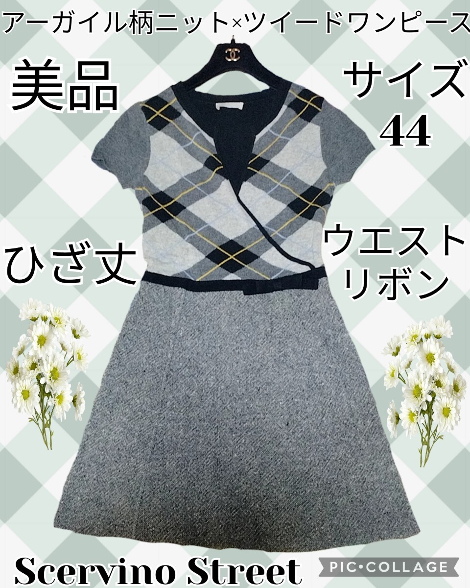 エルマンノシェルビーノの妹ブランド、シェルビーノストリートの半袖ニットアーガイル柄ツイード切替ひざ丈ワンピースになります。