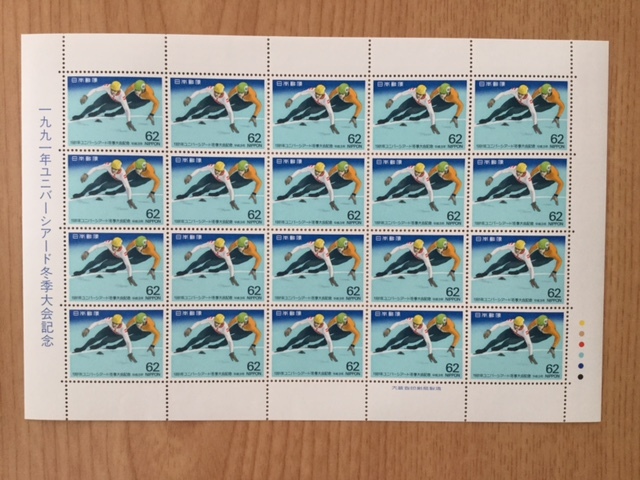 ユニバーシアード冬季大会記念 ショートトラック 1シート(20面) 切手 未使用 1991年